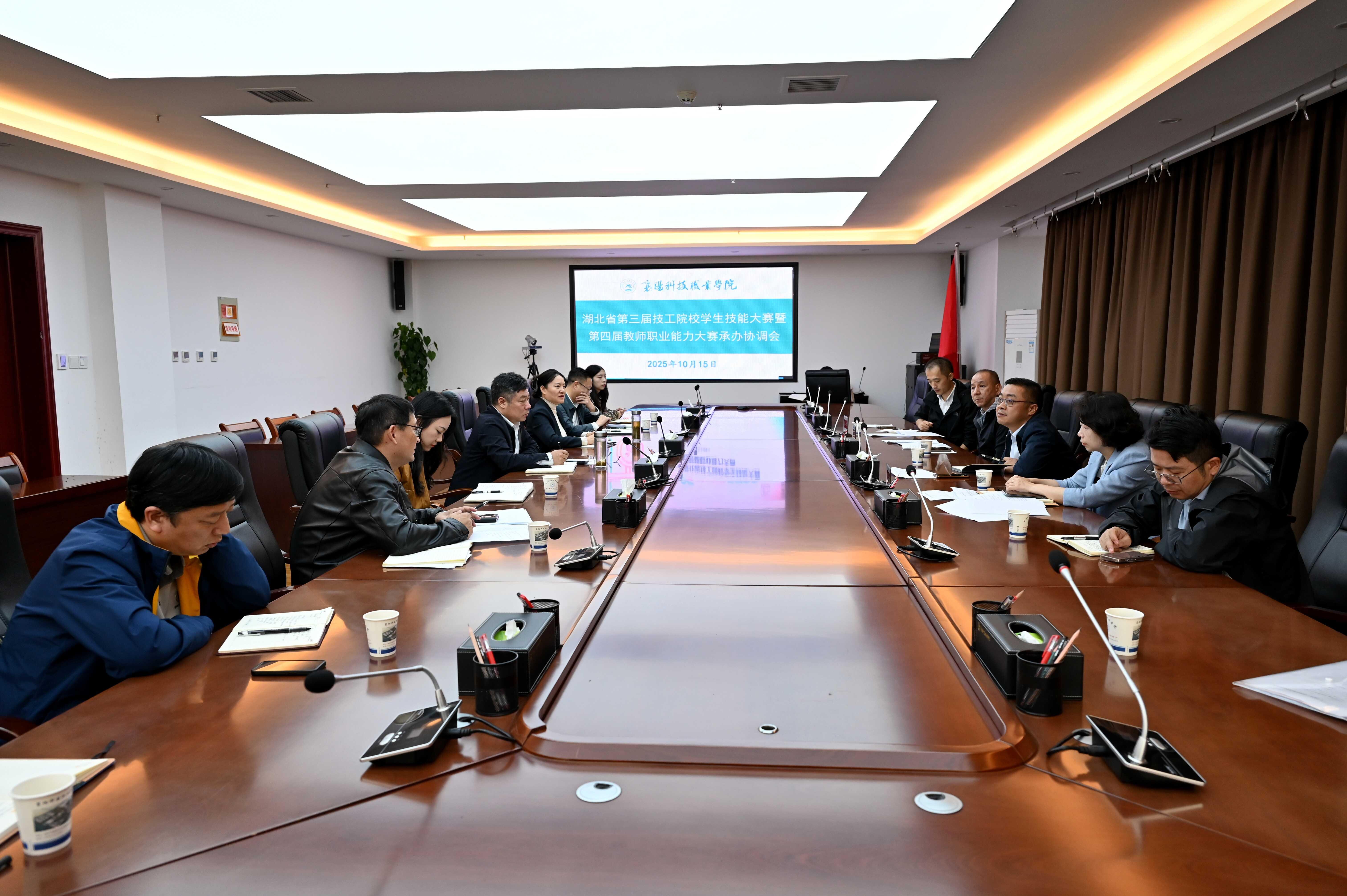 湖北省第三届技工院校学生技能大赛暨第四届教师职业能力大赛将于今年11月在襄阳科技职业学院举行。作为省人社厅主办的年度重要赛事,本次活动以“赛、测、研、会”为核心内容,预计参赛规模超千人。为确保赛事高标准、高质量落地,10月15日上午,省人社厅、市人社局联合调研组专程到襄阳科技职业学院,通过实地考察、召开专题协调会,对赛事承办筹备工作进行精准指导。襄阳科技职业学院领导班子及筹备工作组全体成员全程参与。
