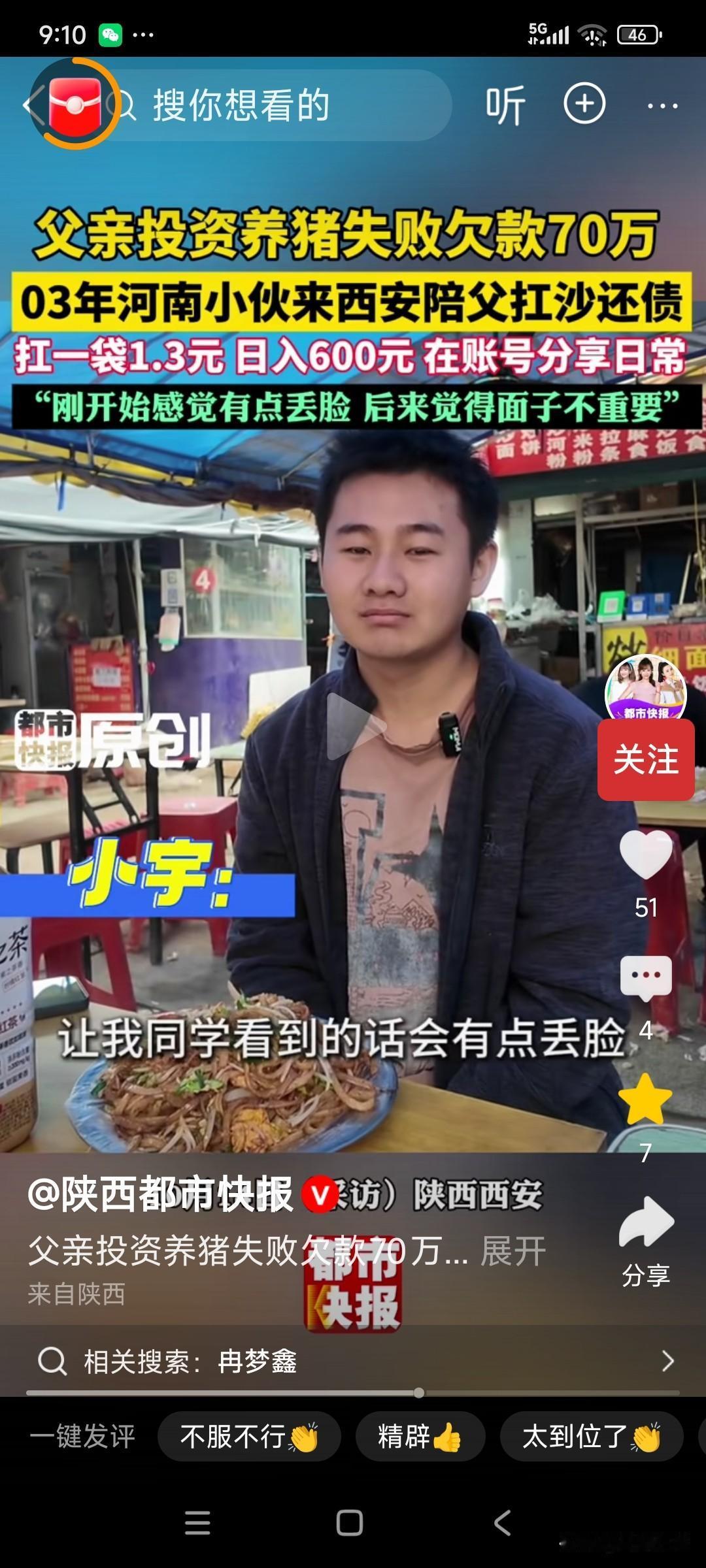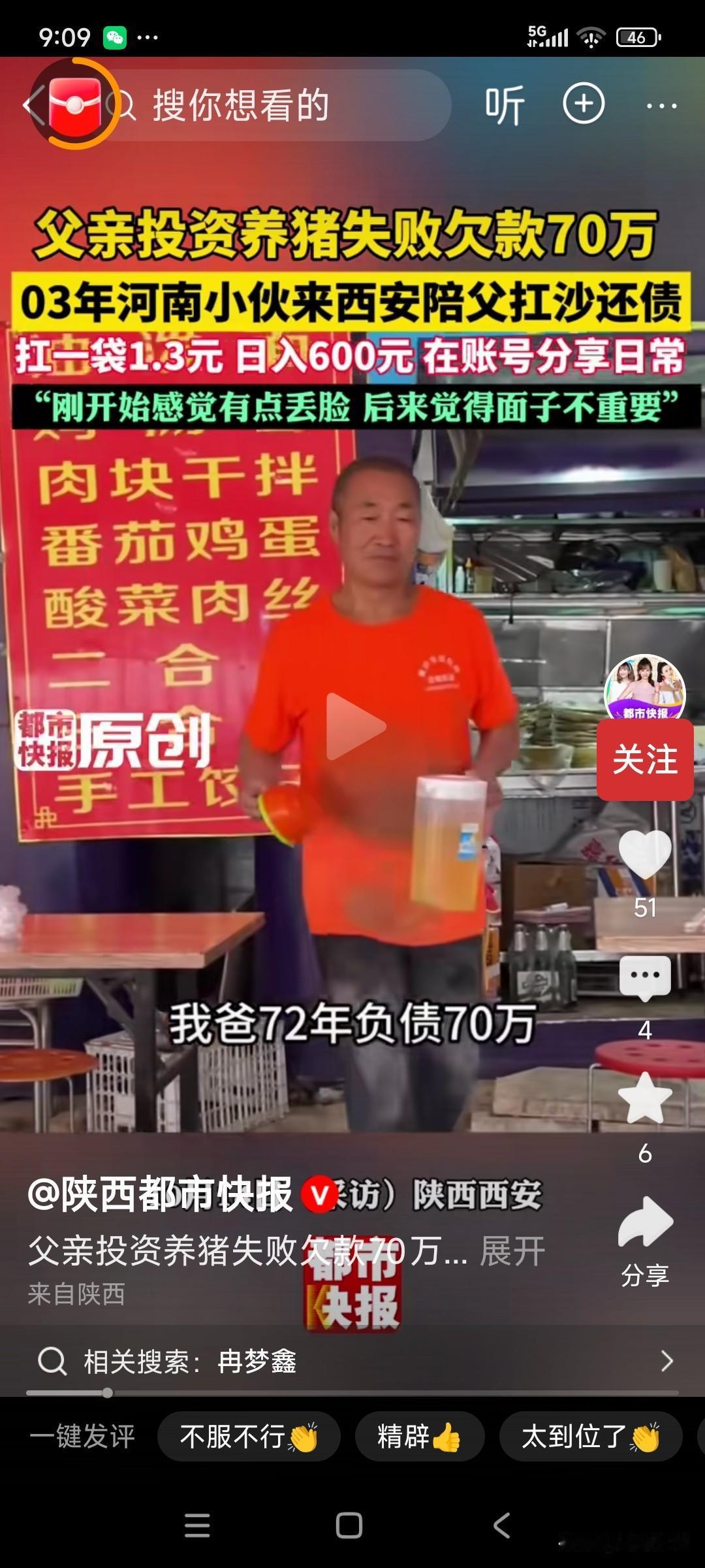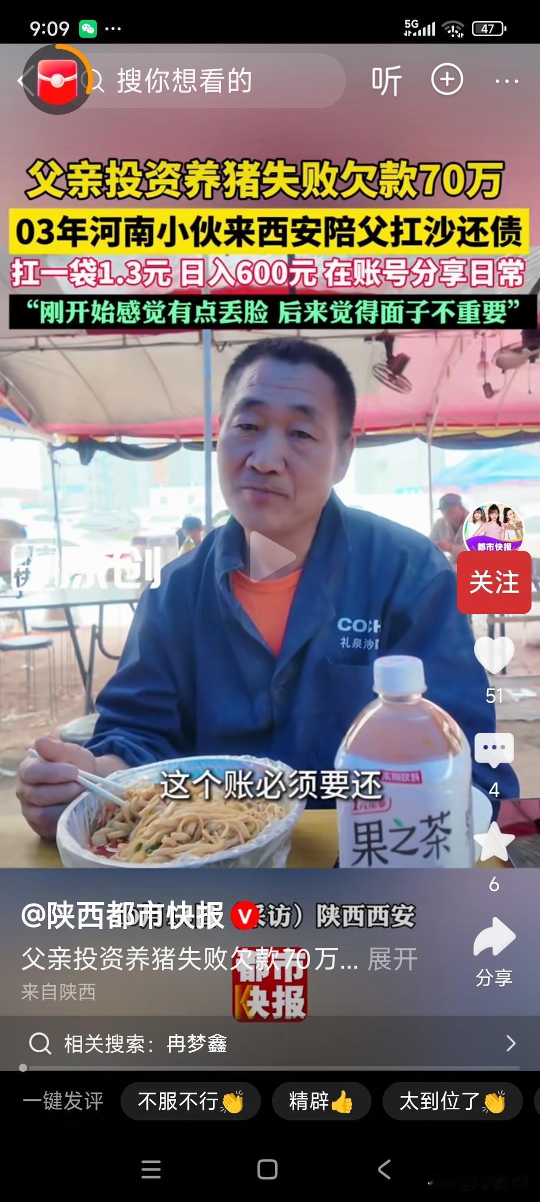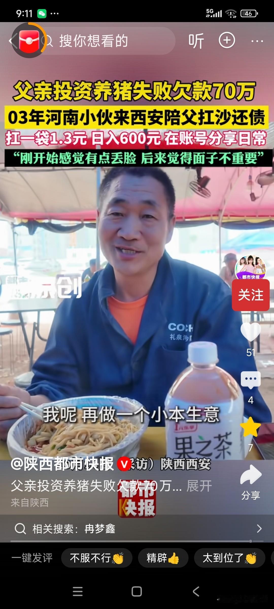 有担当!父亲53岁,欠债70万,儿子大学毕业,一起扛水泥还债,一袋水泥60斤,1.3元,每天扛数吨,挣600元! 父亲72年的,当初,养猪600多头,本想着能过上好日子,却赶上猪/瘟,一下子赔了70万, 儿子小宇03年的,大学毕业后,工资3-4千,也没找到高薪,但是看着父亲,日益老去,还要扛水泥,他就决定陪父亲,一起扛水泥还债! 小宇一开始干,第二天累的都起不来床,他把视/频发到网上,给自己鼓励,有时也担心被别人笑话,被同学看见,但是现在习惯了,还是挣钱重要! 就这样,几年了,父子俩齐心协力,已经还清了大部分欠款,还剩十几万! 难得两个都是有担当的“汉子”,父子俩每天吃着炒饼,面条,面对债务却丝毫没有退却, 现在快还清了,父亲说,以后让小宇去做自己喜欢的事,我去做点小买卖! 这样有担当的父子俩,该给大大的赞! 谁嫁进来都有福了!