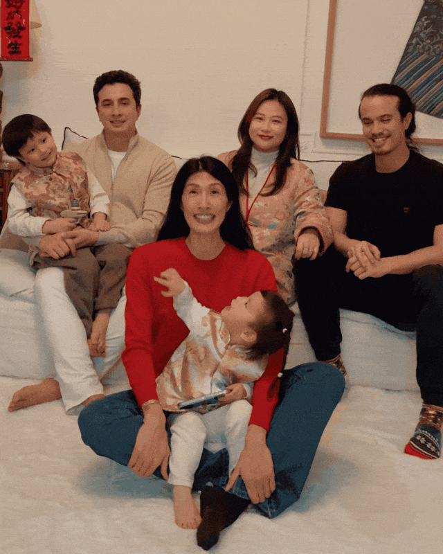 和家人在一起时,没有镜头前的强硬,满脸温柔,享受天伦之乐。