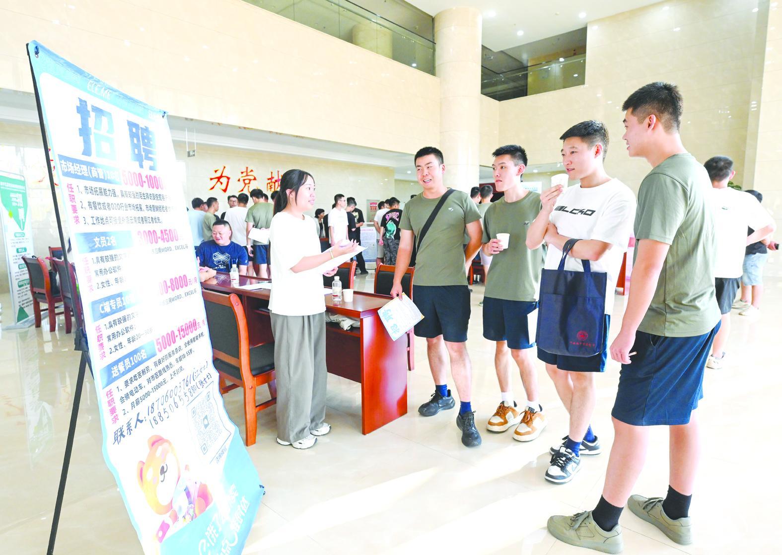 为拓宽企业吸纳高素质劳动力的渠道,11日,由福建省退役军人事务厅、南平市人力资源和社会保障局、市退役军人事务局主办的福建省2025年“百企千岗”巡回招聘系列活动南平市退役军人专场招聘会在武夷新区举办,共589个岗位供退役军人选择。图为招聘会活动现场。(张行健摄)