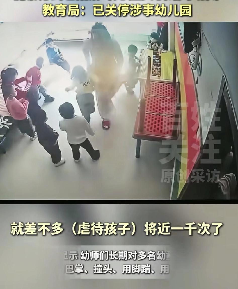 恶魔在身边 一幼儿园被指15天内虐童上千次 多段监控曝光 施暴方式包括扇耳光、撞头、用脚踹、用手掐等 一家长发现孩子身上有淤青,要求看监控视频 发现孩子在没哭没闹的情况下也会被打 监控视频只能看15天的,就发现这15天孩子们受到虐待达到上千次,不只是他一家的孩子,还有好多孩子都被虐待 目前涉事幼儿园被关停涉事老师被开除,幼儿园的法人永久不得成为民办学校的负责人 这处罚太轻了吧 幼儿园在招聘老师的时候就不能多观察观察吗,没有耐心和爱心还当什么幼师,出了事就只是开除处理,那孩子受到的伤害谁来抚慰 有些伤害对孩子来说就是一辈子的阴影