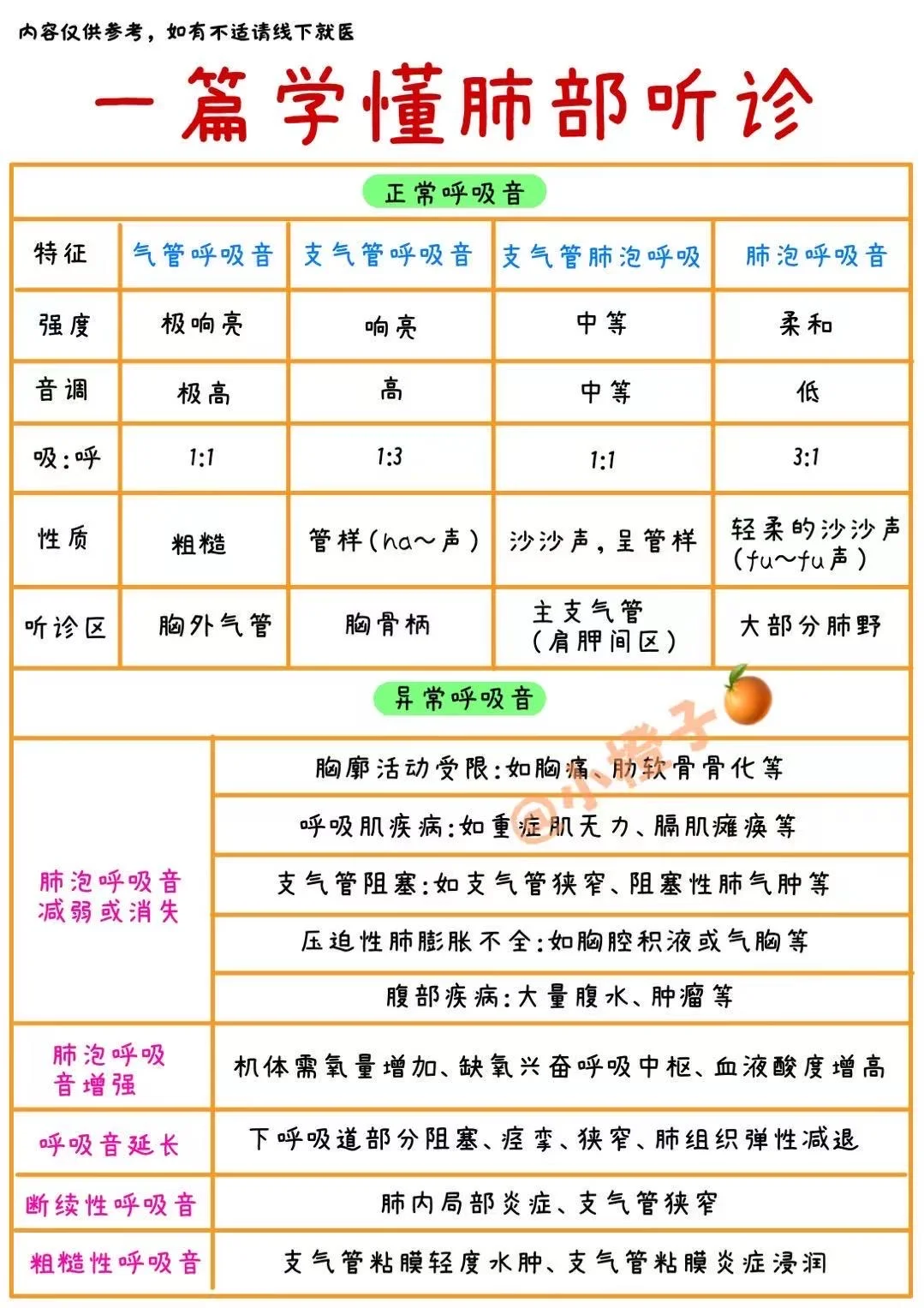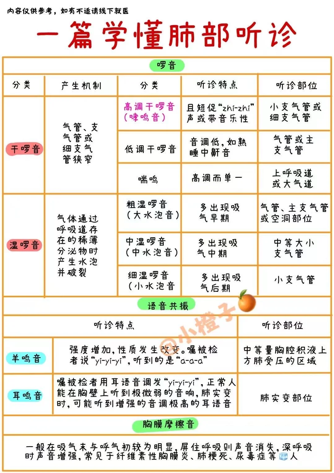 🌟今日小橙子🍊分享的是肺部听诊🩺🙋