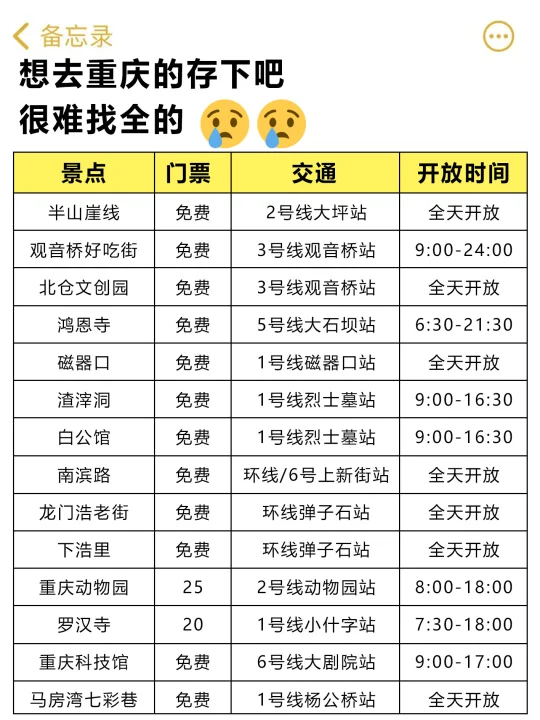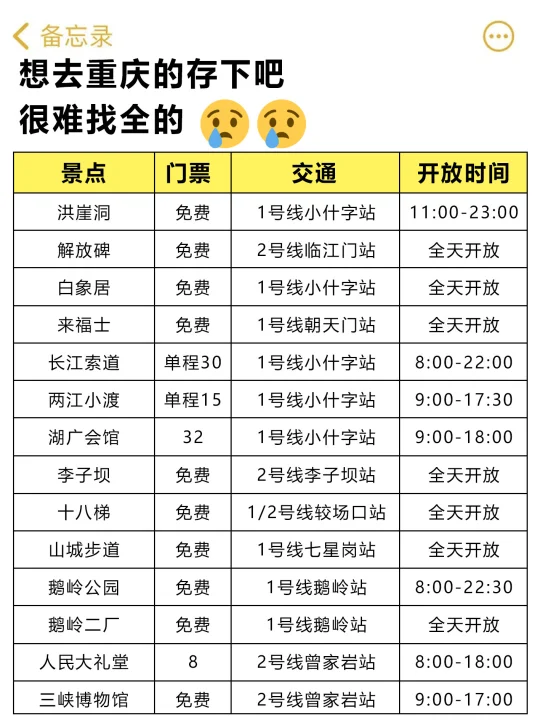 姐妹们!过了国庆之后重庆逐渐进入舒服模式✔️人流减少,住宿回价,同时气温逐渐转凉,不太炎热,是出行的好时节!带着这份超全攻略给即将去重庆的姐妹👭,真心建议看完再出发,游玩真的会很丝滑!!