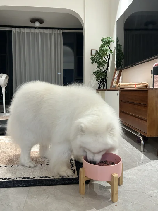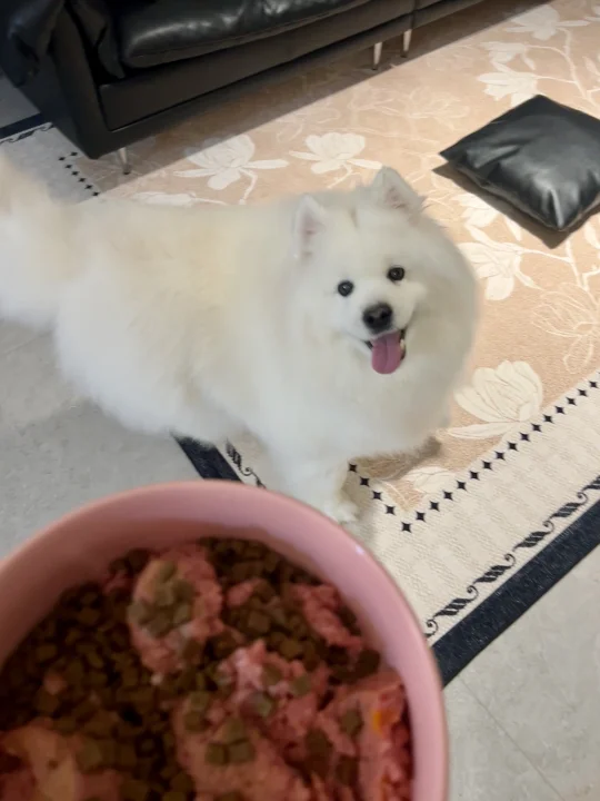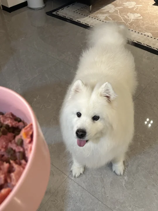小狗发现我要给它做饭时突然加速。 呱!这个角度看起来好像蛤蟆,腿短短的,为了这一口饭蛄蛹半天。
