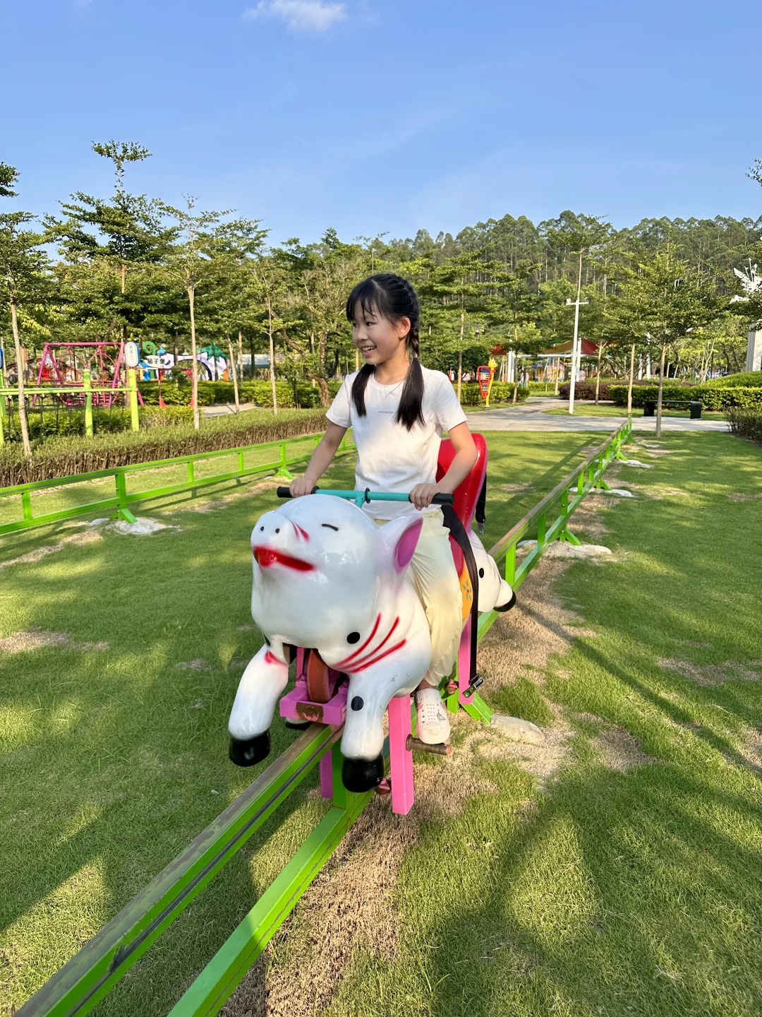 ☀️夏天准备退场,即将迎来11月的秋高气爽,是时候带娃开启一场户外秋游了 🌟新、干净和人少,是我对这个乐园的初印象,🗺️ 乐园18万㎡ ,有大面积的无动力设施分布不同区域。 🎢也有丛林过山车、转转飞椅、卡丁车、海盗船等机动游戏,还有可以玩水的龙骨乐园。 🌟6点闭园,天气不热的话建议一早来游玩,🍽️乐园入口里有室内驿站可以用餐,也可以自备点吃的。