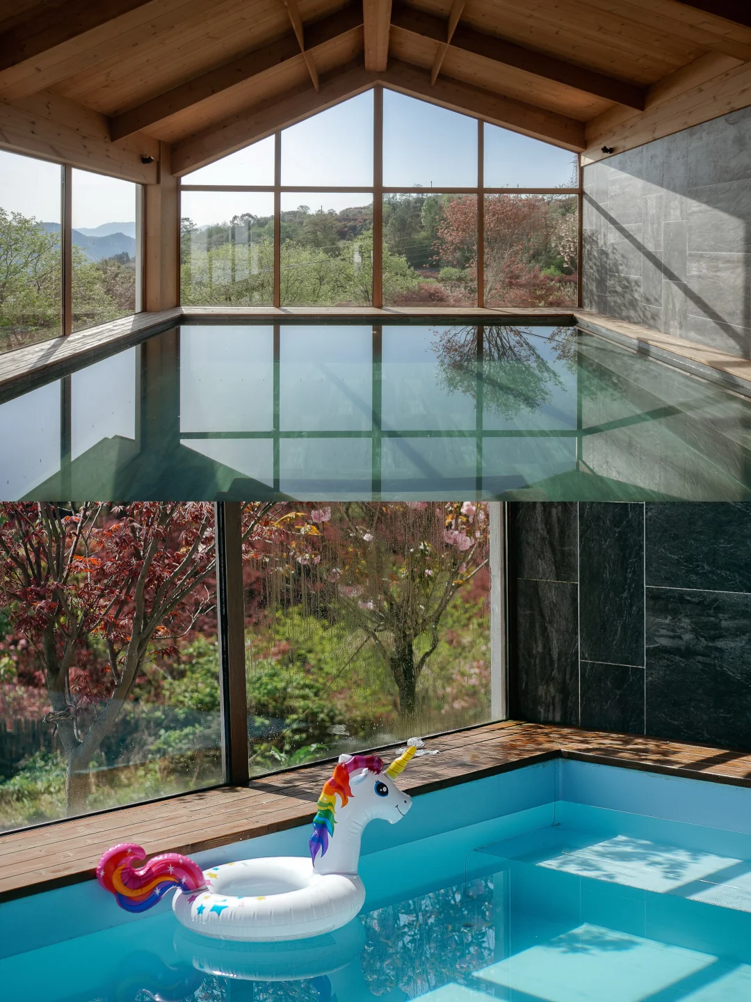 ✅秋冬来一定要泡室内温泉!外面红枫飘着叶子,泡在暖乎乎的池子里,寒意全跑光,舒服到不想起来!