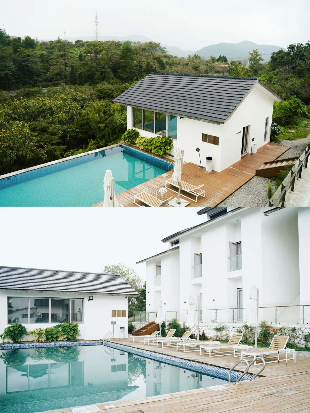 🏡一住进来我就惊了!“卫城”风的白色房子配落地玻璃,在满山绿色里超显眼,随手拍都是森系大片!我选的绿竹大床房型,推窗就是竹影晃悠,晚上听着山风睡觉,比在城市里舒服100倍!带娃的宝子选绿竹童趣房,房间里的细节超贴心~