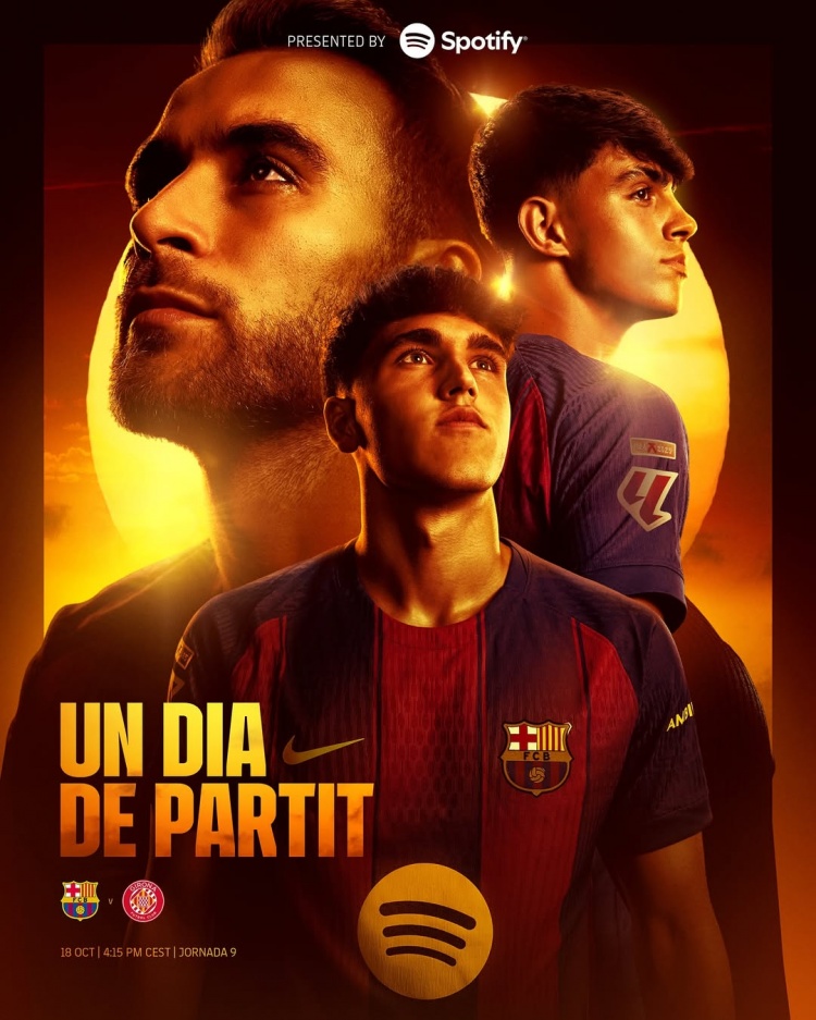 巴萨发布对阵赫罗纳海报:库巴西、埃里克-加西亚、伯纳尔出镜