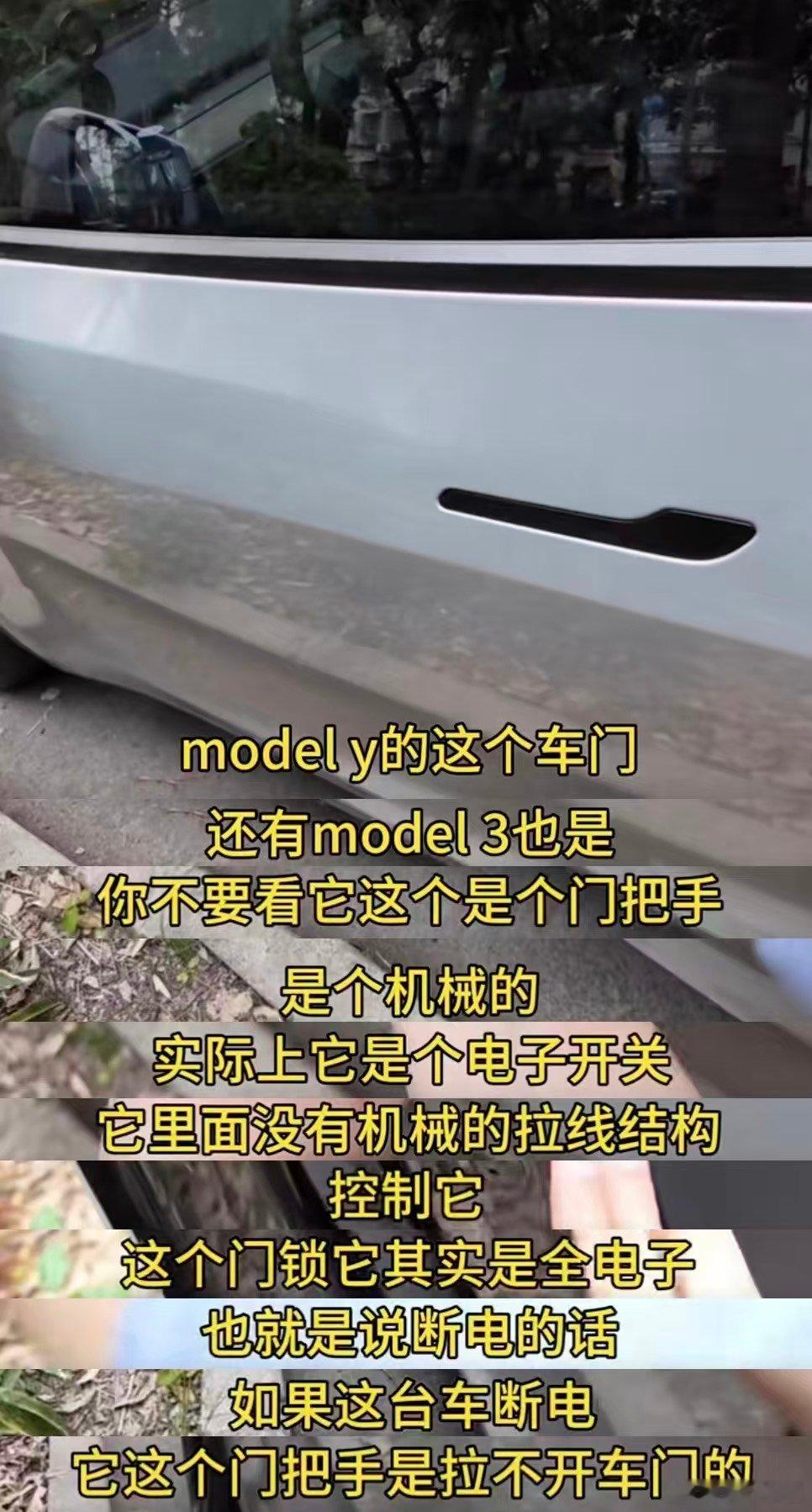 你的车有机械门把手吗 在汽车行业不断发展变革的当下,汽车门把手这一看似不起眼的部件,也引发了诸多讨论,其背后反映出的是行业技术迭代与安全需求的平衡问题。大家之前都以为是机械门把手呀,但是我们现在也是关注到特斯拉全系车型都是非机械电子外门把手,也就是“外开电释放 + 内开机械冗余”而且这几年也在不断的寻求着转型,汽车门把手的设计变革,是行业在追求创新与保障安全之间的探索。对于消费者来说,在选择车辆时,除了关注外观与科技感,也应重视车辆的安全性能。而对于车企而言,如何在提升车辆科技感的同时,确保在各种极端情况下乘客的安全,将是未来需要持续思考与解决的问题