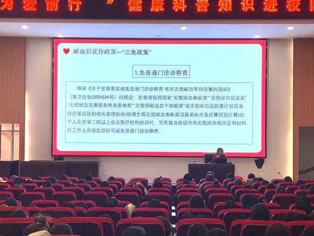 在无偿献血知识普及环节,王爱辉详细说明了献血的流程、条件以及献血前后的注意事项。她特别展示了无偿献血证的意义,以及献血者本人及亲属在需要用血时所享有的优惠政策,体现了“我为人人,人人为我”的互助精神。她的讲解激发了同学们的社会责任感,现场许多同学表示对参与无偿献血产生了浓厚的兴趣,并详细咨询了献血地点和流程,跃跃欲试。