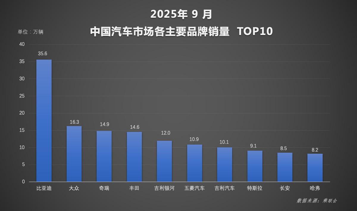 金秋车市热!比亚迪销量、智能化、全维度领跑市场 金秋九月车市 “金九” 成色足,中汽协数据显示全国汽车产销历史同期首破 300 万辆。比亚迪在新能源领域持续强势,9 月销新能源车 39.6 万辆(同比增 18.6%),1-9 月累计 326 万辆,完成全年目标 71%,其中王朝丨海洋品牌稳居全市场单一品牌销量冠军。 智能化方面,比亚迪 “天神之眼” 辅助驾驶系统表现亮眼,截至 9 月搭载车型超 170 万辆(9 月新增 29.5 万辆),辅助驾驶车型国内占比达 91.3%,日均辅助驾驶数据里程破 1 亿公里,还登顶太平洋汽车 9 月智能驾驶辅助车型品牌销量榜,销量是第二名 4 倍多。 全球化提速,比亚迪 9 月海外销量 7.0851 万辆(同比增 107%),1-9 月累计超 70 万辆(占集团总销量 22%)。10 月 9 日,第 1400 万辆新能源汽车在巴西下线,巴西总统卢拉成为宋 Pro 车主。依托核心技术,比亚迪尽显中国新能源车竞争力。