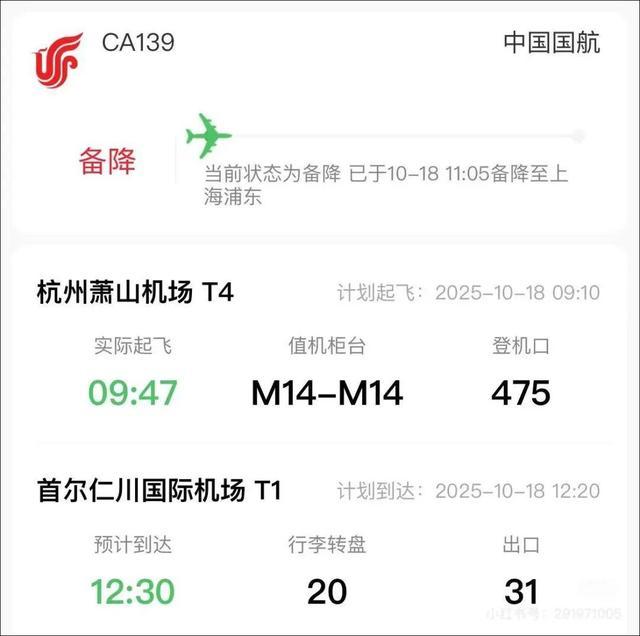 据都市快报此前报道,18日中午,有网友发文称,杭州飞往韩国的国航航班上,行李架突然着火,航班紧急备降上海浦东。