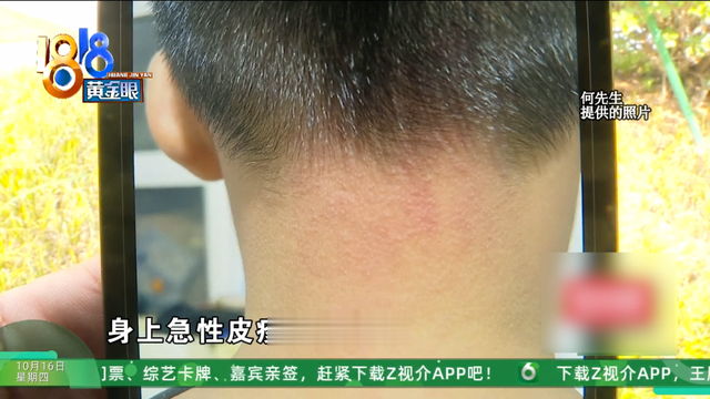 何先生:后来我们就去了妇儿医院住院,从9月28号开始住院,到中秋节前一天出院,身上急性皮疹伴随发烧。妇儿医院那边说,皮疹不肯定是这个药物造成的,但是也不排除这个药物的影响。