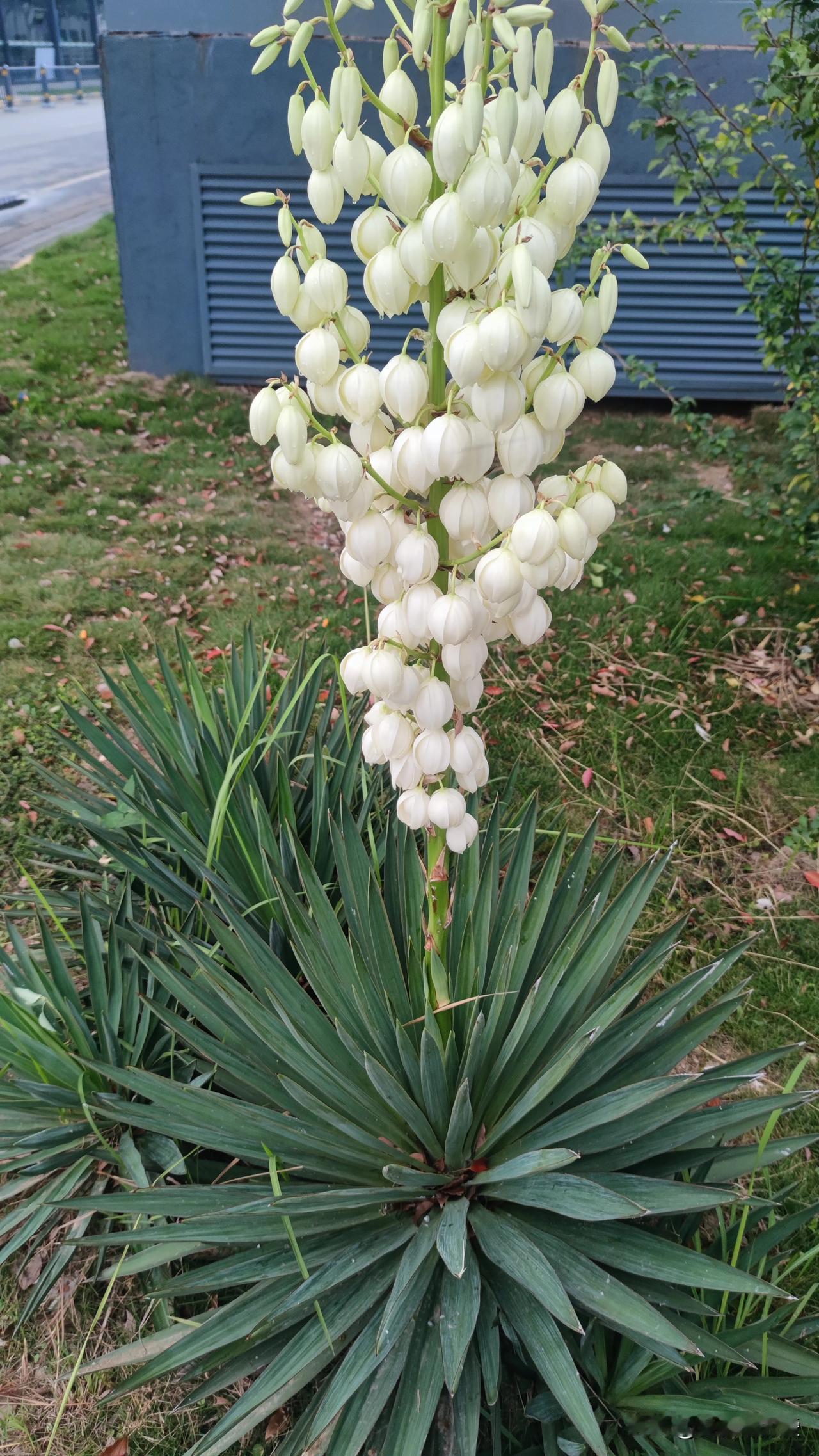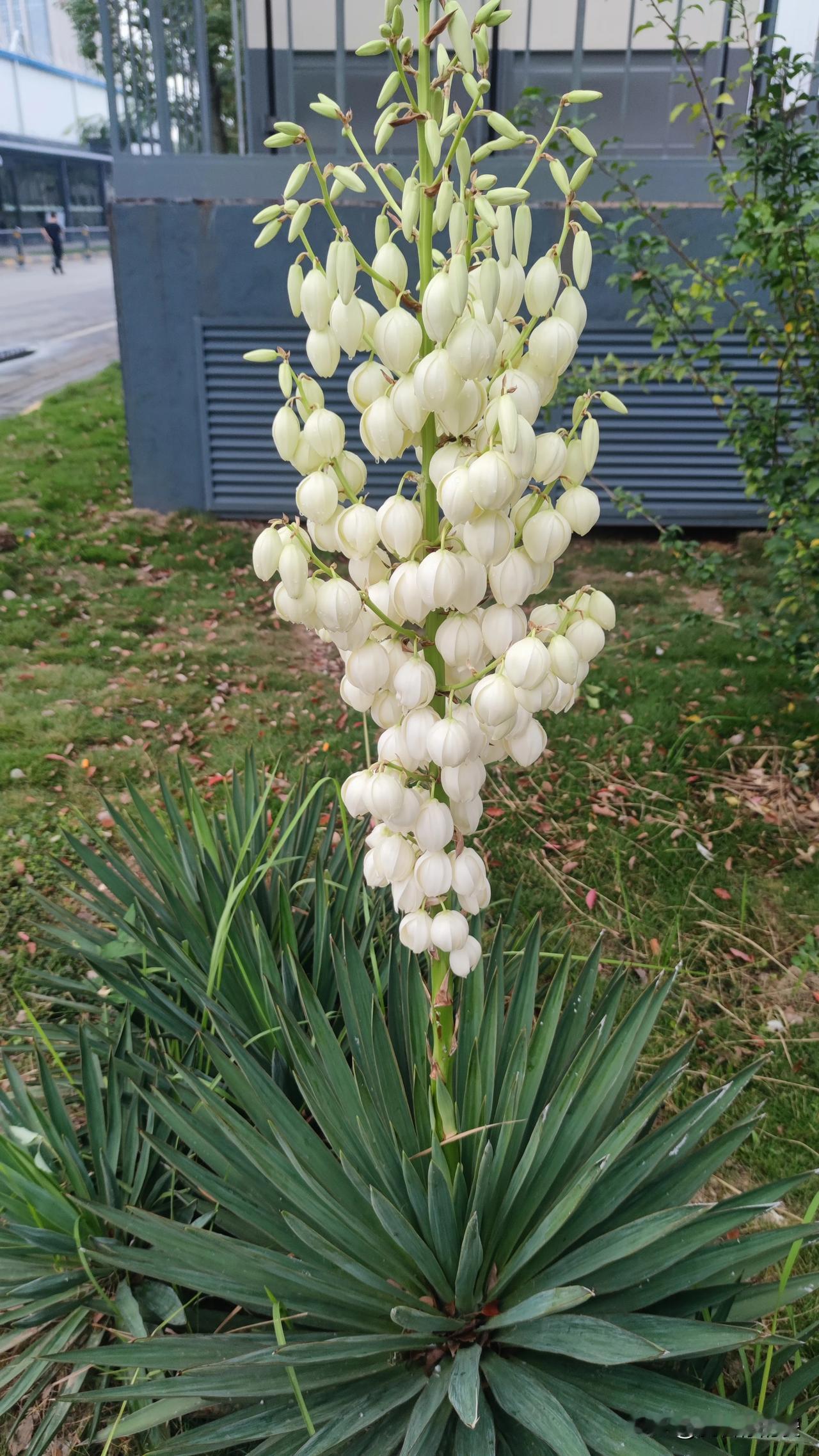 剑麻花开,那景象着实惊艳。滨河路边绿化带里的剑麻,叶片似利剑,组合成硕大绿莲。正逢花期,叶芯伸出花柄,缀满半开半合的乳白色小花,像饱满百合,远看如绿莲上掌着乳白色宝塔,带着几分禅意。 剑麻生长8至12年才开花,难怪花香浓厚绵长。不过这花可不好亲近,我伸手想凑近欣赏,碰到叶尖,手指立马被扎破出血。原来剑麻叶是花的卫士,让花朵能安闲高贵。而且剑麻不止好看,叶子还能消肿解毒、凉血止血,实用性满满。