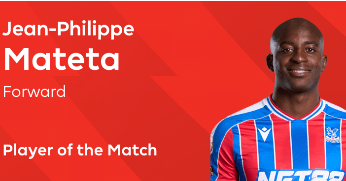 帽子戏法!官方:马特塔当选水晶宫3-3伯恩茅斯一役全场最佳