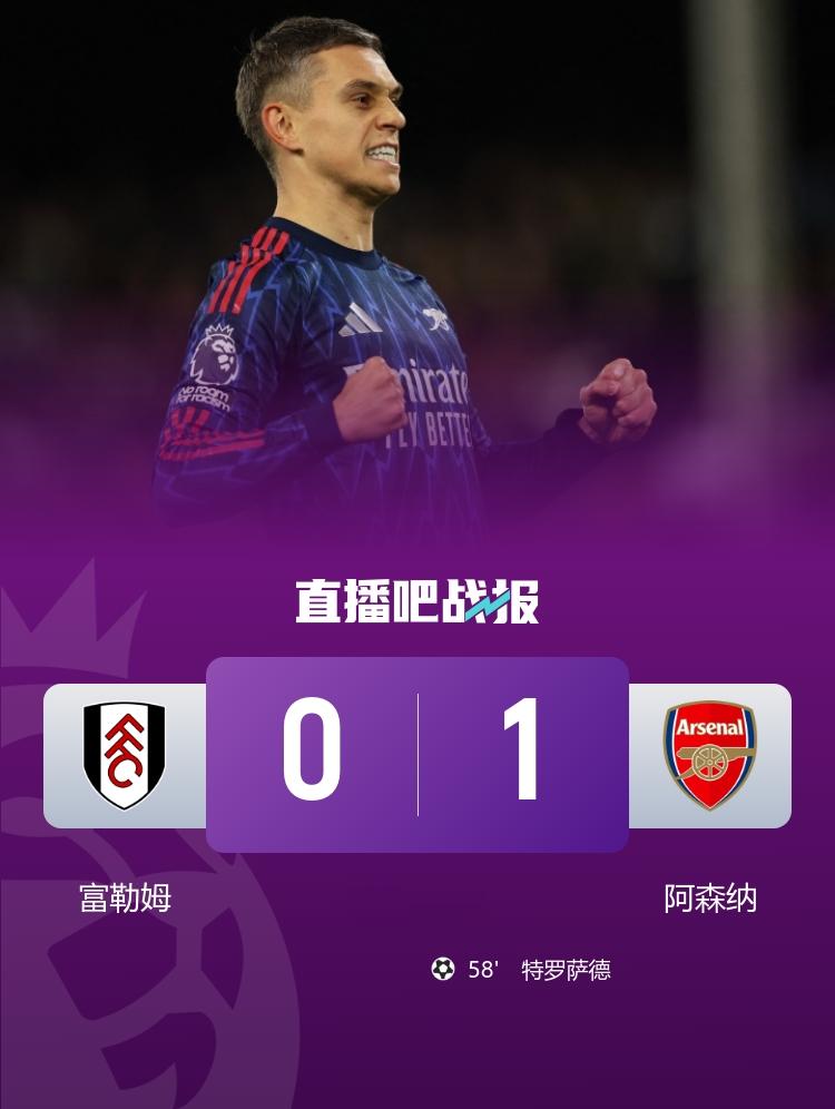 联赛3连胜!阿森纳1-0富勒姆3分领跑 特罗萨德制胜加布里埃尔助攻