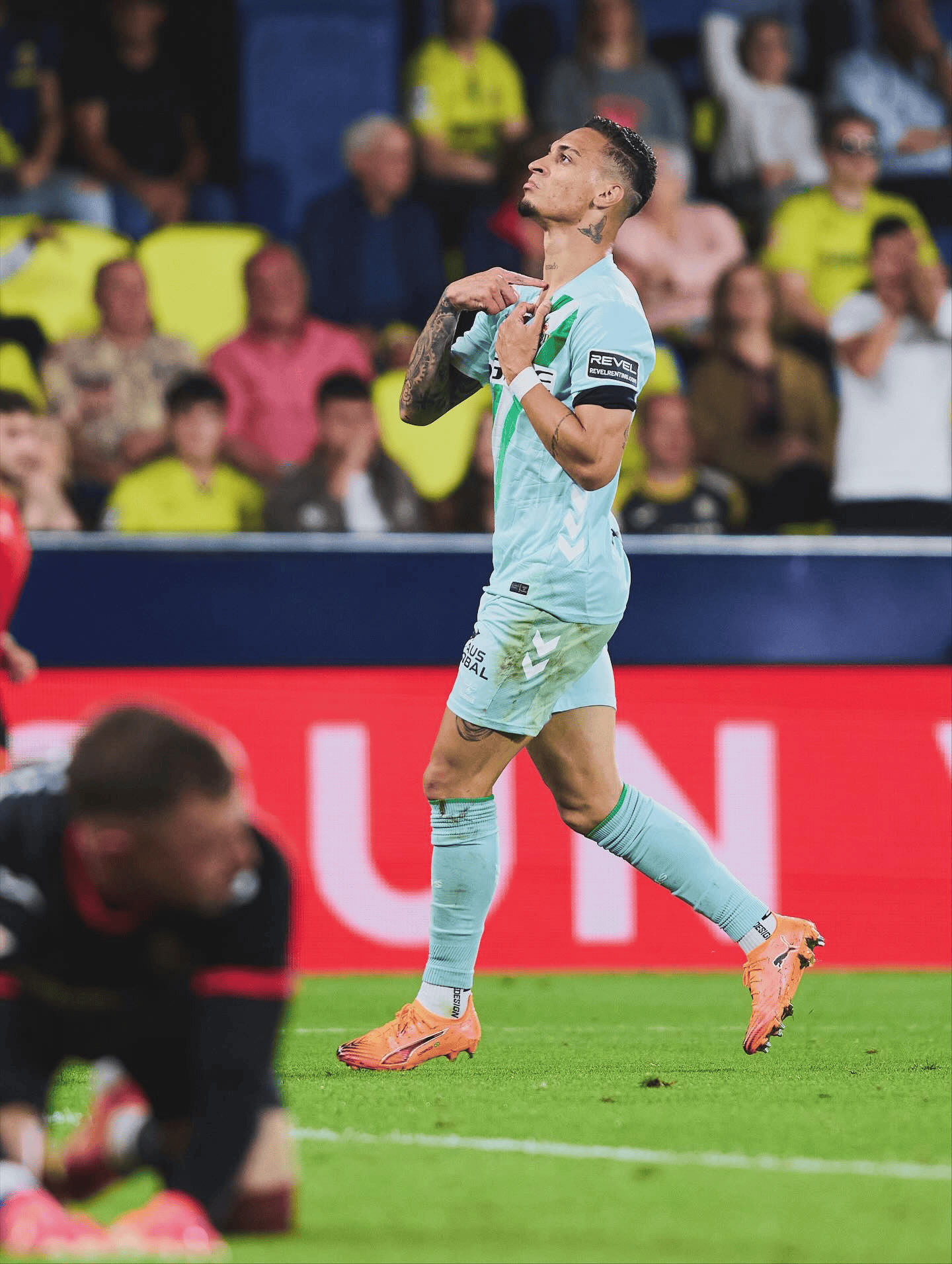 虎扑10月19日讯西甲第9轮,皇家贝蒂斯客场2-2战平比利亚雷亚尔,安东尼在比赛中梅开二度并攻入绝平。