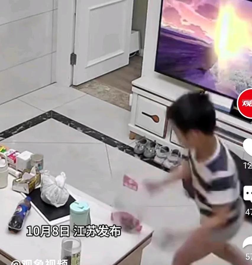 男孩多次挥舞打翻零食袋,袋子砸中电视屏幕瞬间损坏, 妈妈说,虽然损失5000块,已揍。 小男孩在屋里玩耍, 把零食袋放到茶几上, 多次挥拳扫射袋子掉到地上,他捡起又开始挥拳, 直到一次打中电视机, 屏幕坏了, 他才跑到屋里告诉妈妈, 电视碎了, 这还进去禀报, 肯定是要挨揍的节奏, 熊孩子就是这样,被揍出来的。 这应该男女混合双打!