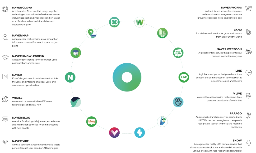 与全球其他科技巨头类似,Naver通过核心平台(搜索引擎)获取用户,然后不断扩展服务,形成一个用户难以离开的生态系统。