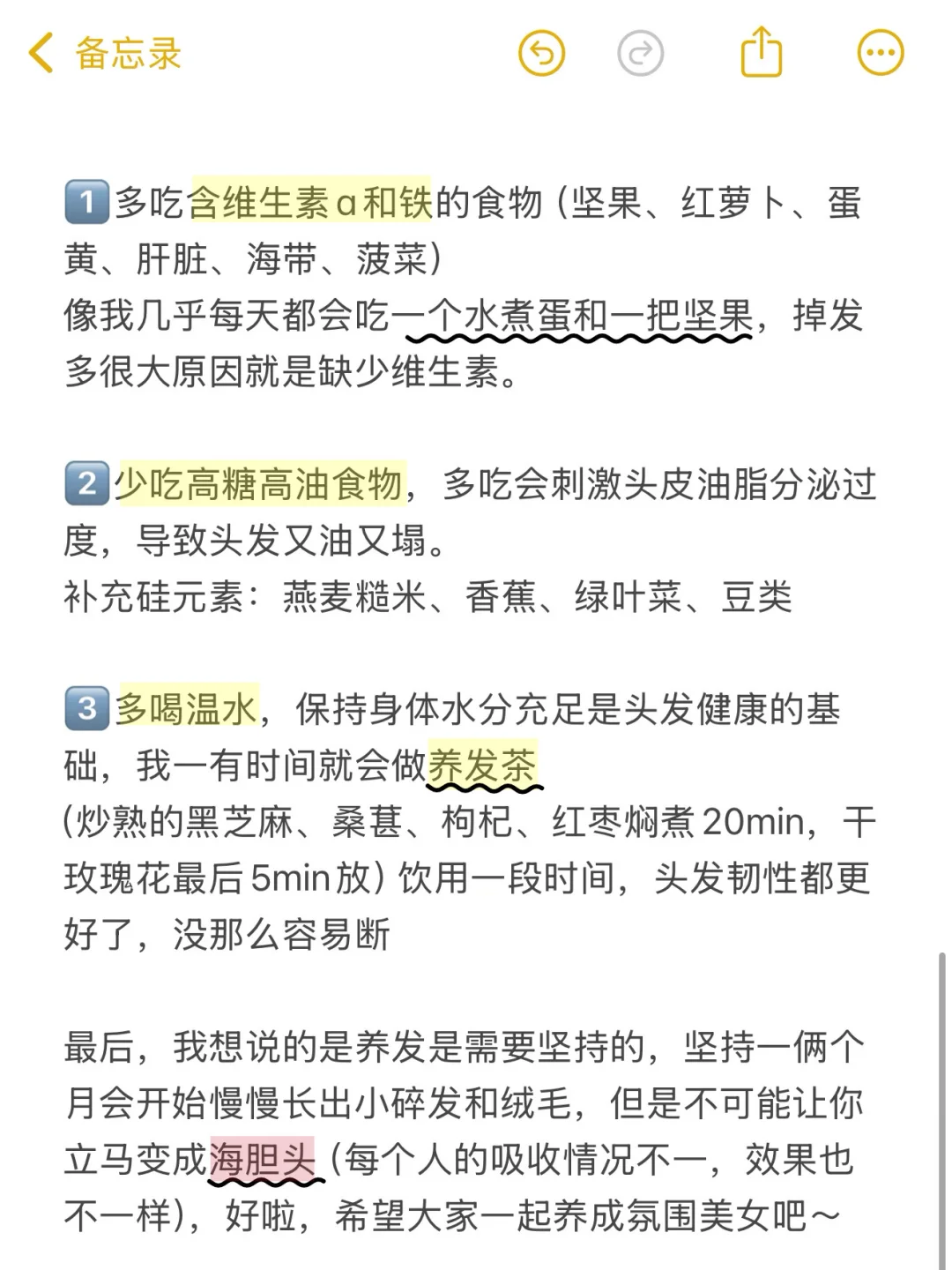 1、多吃含维生素a和铁的食物(坚果、红萝卜、蛋黄、肝脏、海带、菠菜)像我几乎每天都会吃一个水煮蛋和一把坚果,掉发多很大原因就是缺少维生素