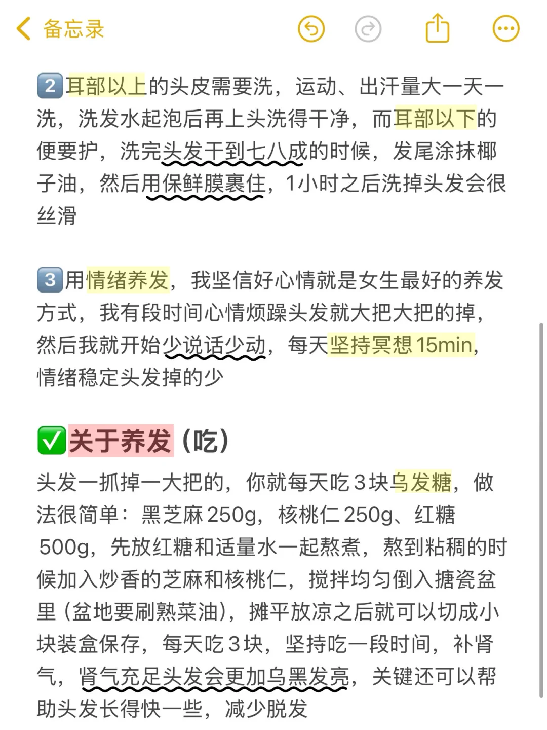 ✔️耳部以上的头皮重在“洗”,如果出汗量大,或者油头的姐妹记得一天一洗,干头皮两三天一洗就好!耳部以下的头发重在“护”,洗完头发干到八成的时候,发尾涂抹椰子油,然后用保鲜膜裹住,1小时之后再洗掉头发会非常丝滑