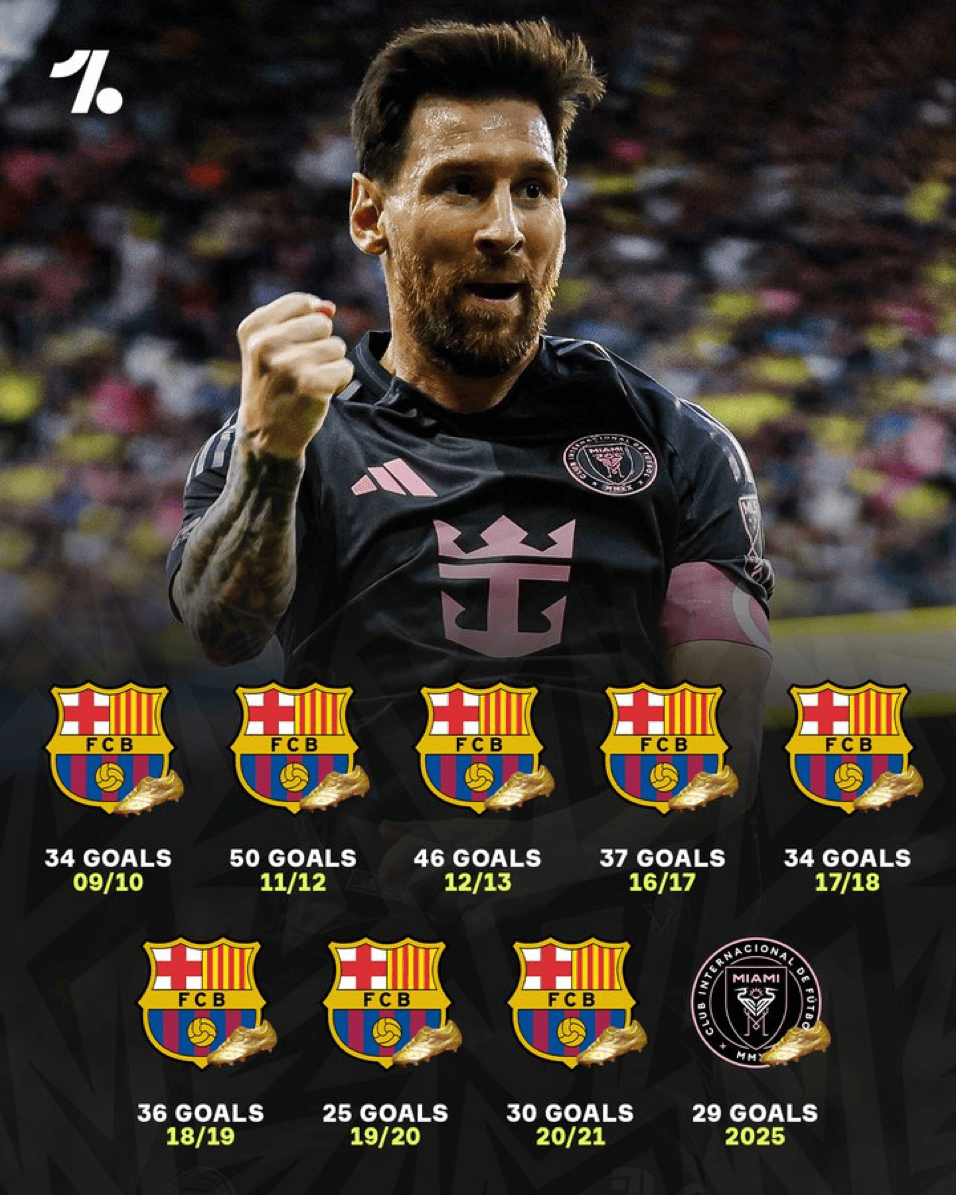 梅西以29个进球荣膺本赛季美职联的最佳射手,这是他职业生涯第九次获得联赛金靴,此前八次都是在效力巴塞罗那期间获得。