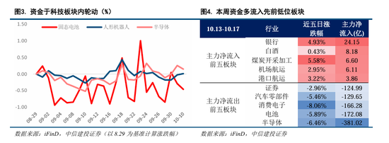 初期资金于科技板块内轮动,后续或逐步流向低位板块。九月初至十月初,科技板块交易热度高,此时资金多于科技板块内轮动,依次是新能源(固态电池,锂电材料)、人形机器人(宇树上市预期)、半导体(光刻机、存储芯片)等,整体上还在泛科技板块内部轮动。十月随着中美关系的变化,风险偏好开始下降,资金或从泛科技板块逐步流向消费、医药、金融、资源中其他低位板块。