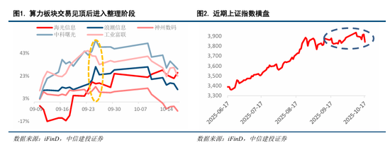算力板块交易过热后见顶,市场进入整理期。9月初随着算力核心公司交易过热后见顶,市场进入整理期,9月以来上证指数单日涨跌幅多为1%以下,呈现指数横盘态势。