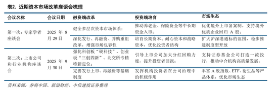 资本市场改革向前挺进,多项举措稳预期促升级。近一段时间以来,证监会召开多场座谈会,就“十五五”时期资本市场全面深化改革问计市场,就当前市场关切的热点问题以及中长期促进资本市场高质量发展的体制机制和政策问题深入研讨。