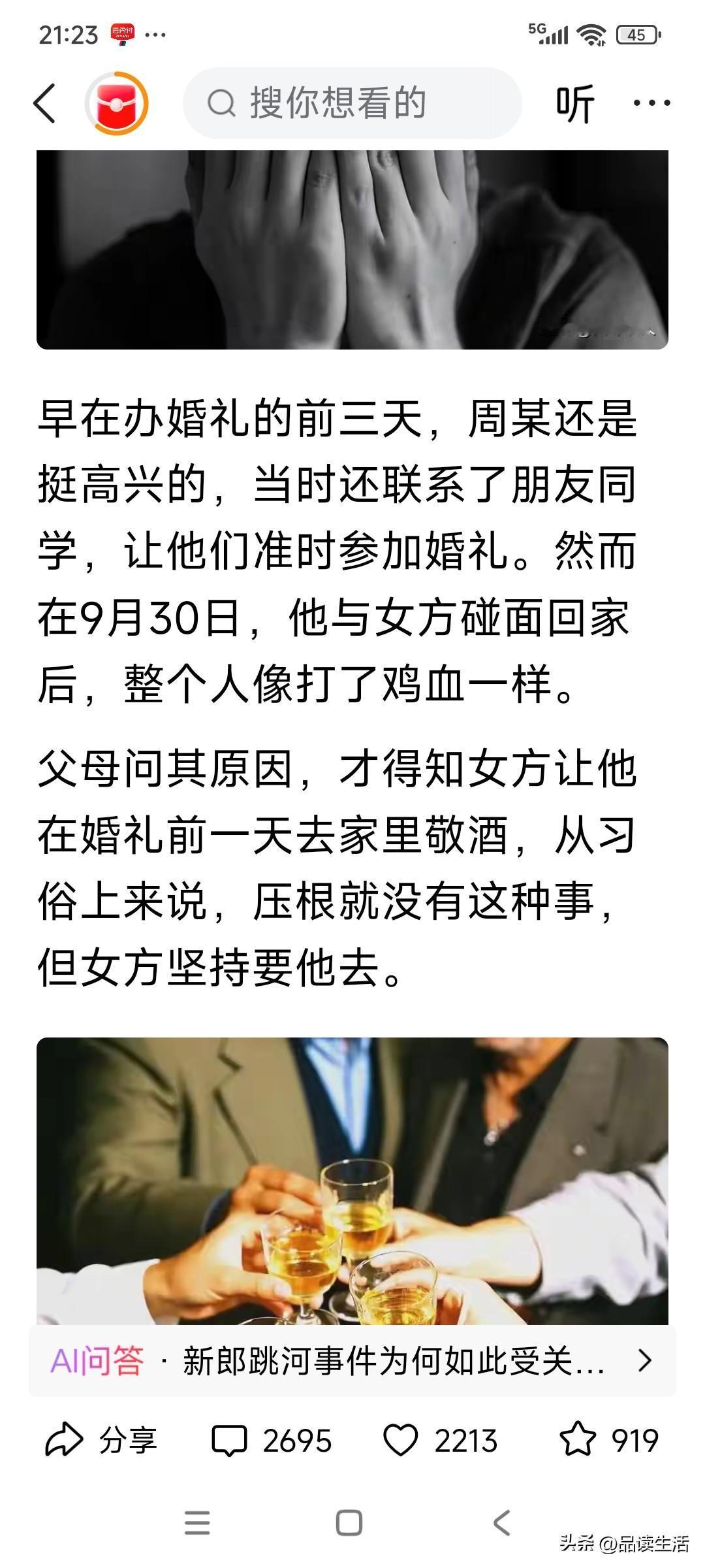 楼梯的喜字还贴着,喜花开着,却等不来主人了,新郎跳河,新娘退回18万彩礼和六金!双方已经达成“协议”,新郎的堂伯说,已经拉回来,准备下葬了!不再追究女方责任,没办法追究了? 周先生一家,终究还是太善良了, 23年就已经订婚,新娘却迟迟不愿意结婚,一会说说自己要考/研,一会说自己胖,不适宜照婚纱照…… 有几个女孩子不愿意照结婚照? 男方在西安给买的房子,还给了18.8万彩礼,和6金, 都按照新娘家的要求在进行, 谁知道临近结婚,新娘却还是和新郎吵起来,只因为,她们女方要求人家必须提前一天,去给家里敬酒, 而男方没有这个讲究,就没同意,两人谈崩了,新郎对这个高中就谈了的女友,失望极了! 才会去跳了河! 可惜父母,太难过, 新娘子只是退回了男方给的东西,没啥损失,拍拍屁/股走了, 可惜了,这段感情错付了! 一切都来的及,本来就没领结婚证,即使领了也可以分开的啊? 为了这样值得吗? 父母着急最大,白发人送黑发人,喜事变成了葬礼,任谁受得了?