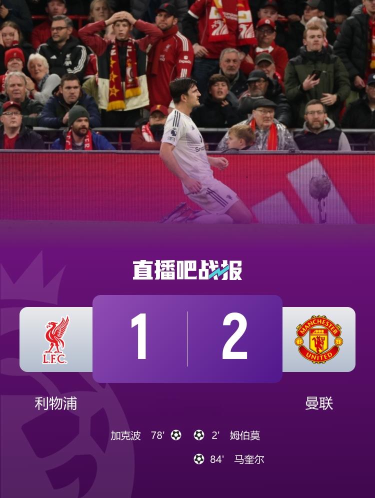 直播吧10月20日讯英超第8轮,利物浦主场1-2曼联。著名评述员詹俊在社媒发文点评了比赛。