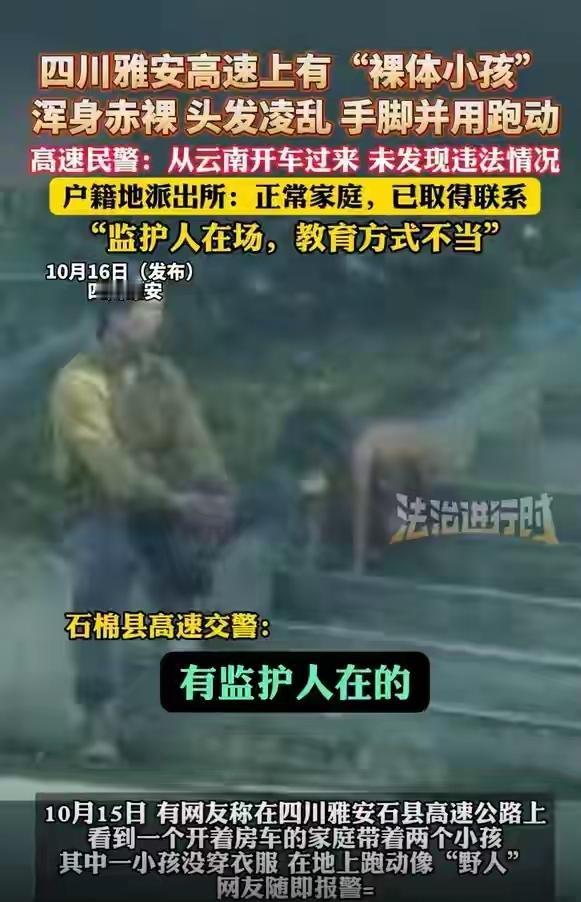 3岁男童裸体爬行进食 , 高学历父母称自然教育引争议 四川雅安一高速服务区里,一名约3岁男童全身赤裸。他四肢着地爬行,趴在地上吃东西。视频被人拍下传到网上。网友看完炸了锅。 男童父母都是高学历。他们解释说这是“回归自然”教育。觉得让孩子光身子爬行能亲近自然。但当地村民看不下去。有人说这孩子一年到头不穿衣。冬天零下温度也光着。看着就让人心疼。 警方接到报警后调查。初步结果没发现虐待或拐卖。可律师站出来说话。他认为父母没尽到监护责任。孩子健康权可能被侵犯。人格尊严也受损害。 现在多个部门联手介入。要求父母别再公共场合这么干。同时调查是否违法。这件事闹得挺大。教育孩子本没错。但方式不能太极端。孩子需要的是保护。不是拿健康冒险。 参考资料:法治进行时、生活帮。 儿童爬行的