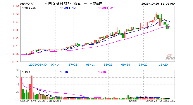 科创新材料ETF汇添富(589180)业绩比较基准为上证科创板新材料指数收益率,管理人为汇添富基金管理股份有限公司,基金经理为罗昊,成立(2025-06-05)以来回报为30.85%,近一个月回报为-1.15%。