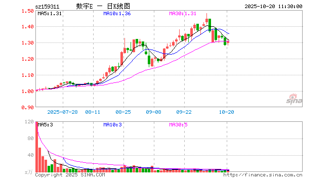 10月20日,截止午间收盘,数字经济ETF易方达(159311)涨1.64%,报1.304元,成交额411.96万元。数字经济ETF易方达(159311)重仓股方面,东方财富截止午盘涨0.88%,中芯国际涨1.77%,北方华创涨0.90%,海光信息涨1.80%,汇川技术涨1.83%,寒武纪涨4.07%,科大讯飞涨0.80%,豪威集团涨0.61%,海康威视跌2.24%,中科曙光涨1.90%。