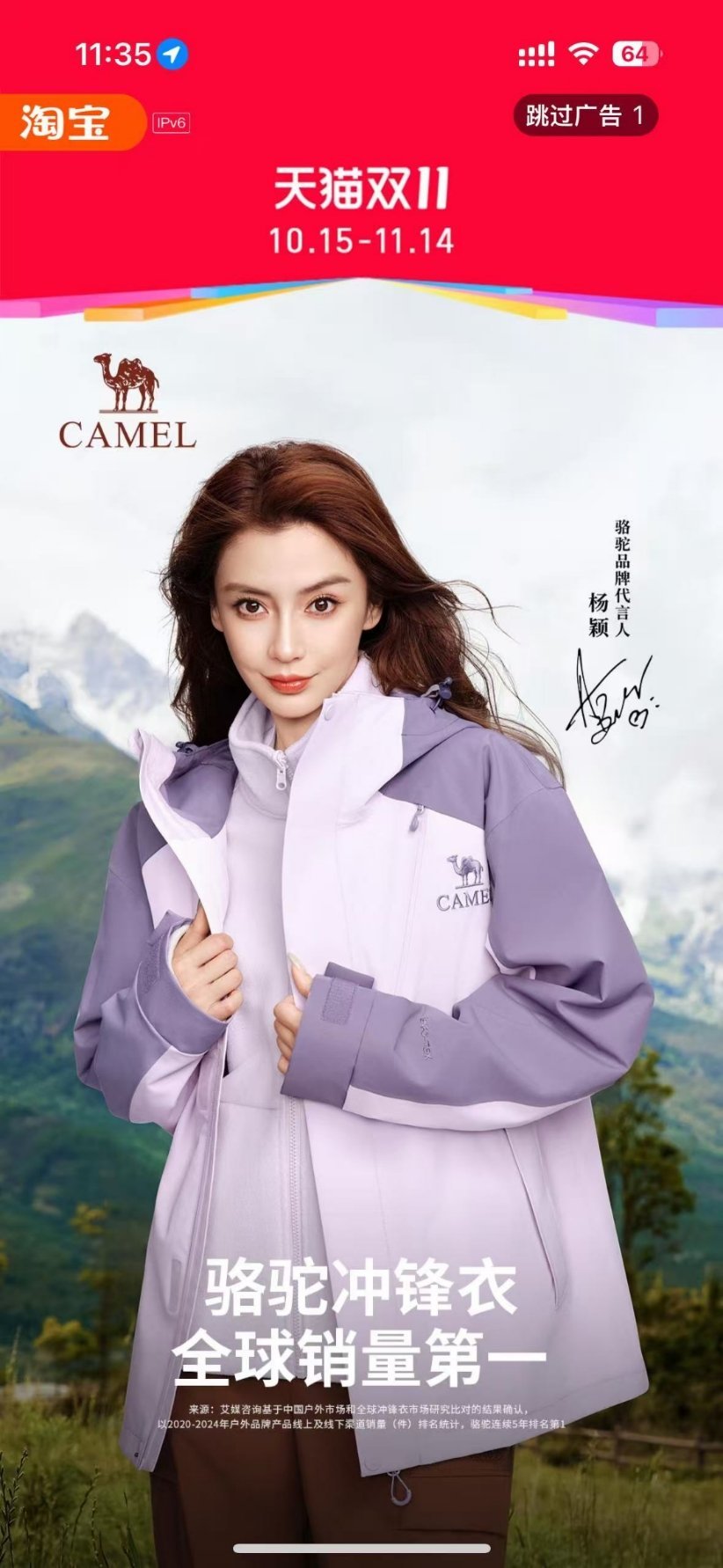 骆驼转发了angelababy这条全球代言商务,同时还有绝美的开屏,看得出骆驼真