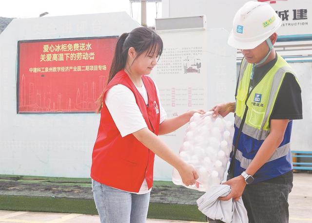 活动期间,志愿者还常把清凉送到劳动者身边。他们走进泉州数字经济产业园二期项目工地,为挥汗如雨的建筑工人们送去清凉饮品,感谢他们为城市建设付出的艰辛;他们来到多个交警执勤岗亭和环卫工作站点,向在烈日下坚守岗位的交警和环卫工人表达敬意和关心。