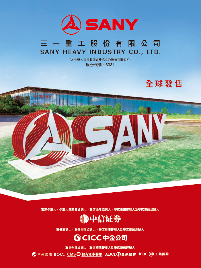 三一重工,计划全球发售5.804246亿股H股(占发行完成后总股份的6.41%,另有15%发售量调整权),其中90%为国际发售、10%为公开发售,另有15%超额配股权。每股发售价介乎20.30港元~21.30港元,每手200股,入场费4,302.97港元,最多募资约123.63亿港元。倘发售量调整权及超额配股权悉数行使,最终发售股份将达约7.68亿股,最高募资将达163.50亿港元。