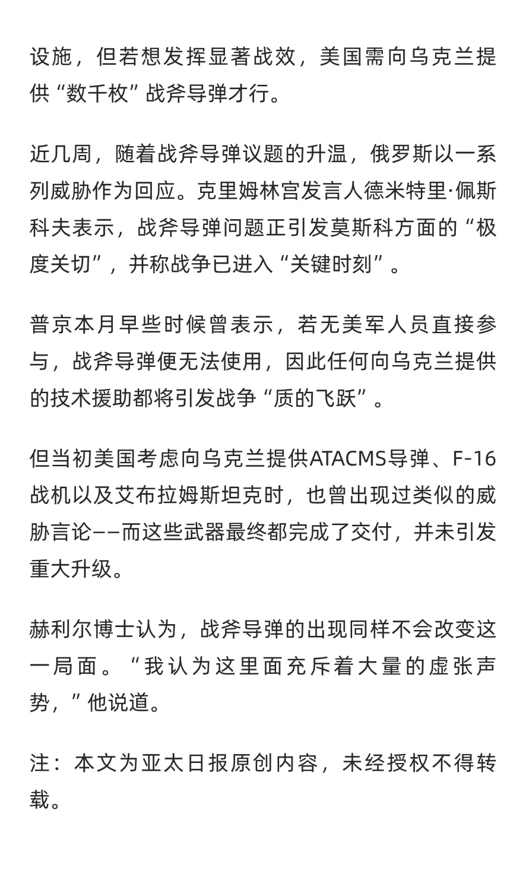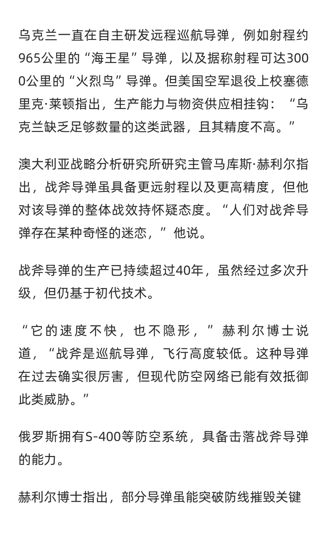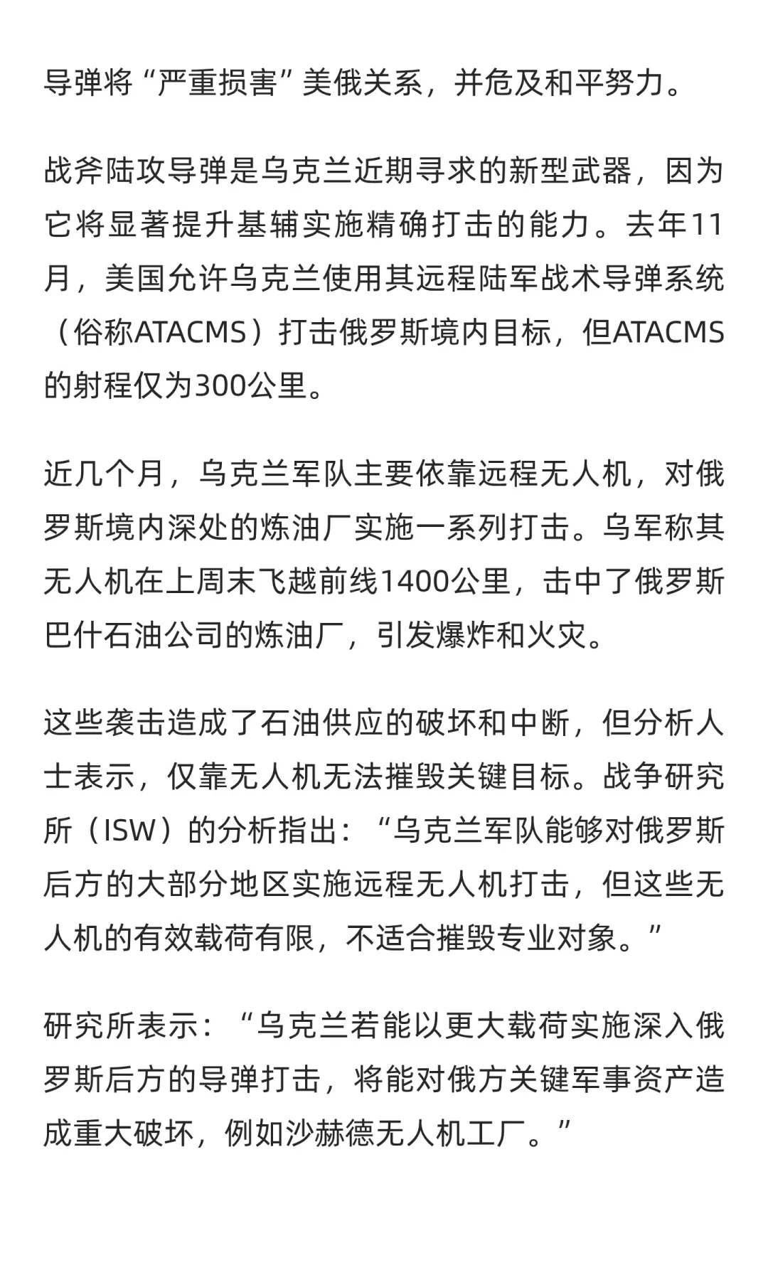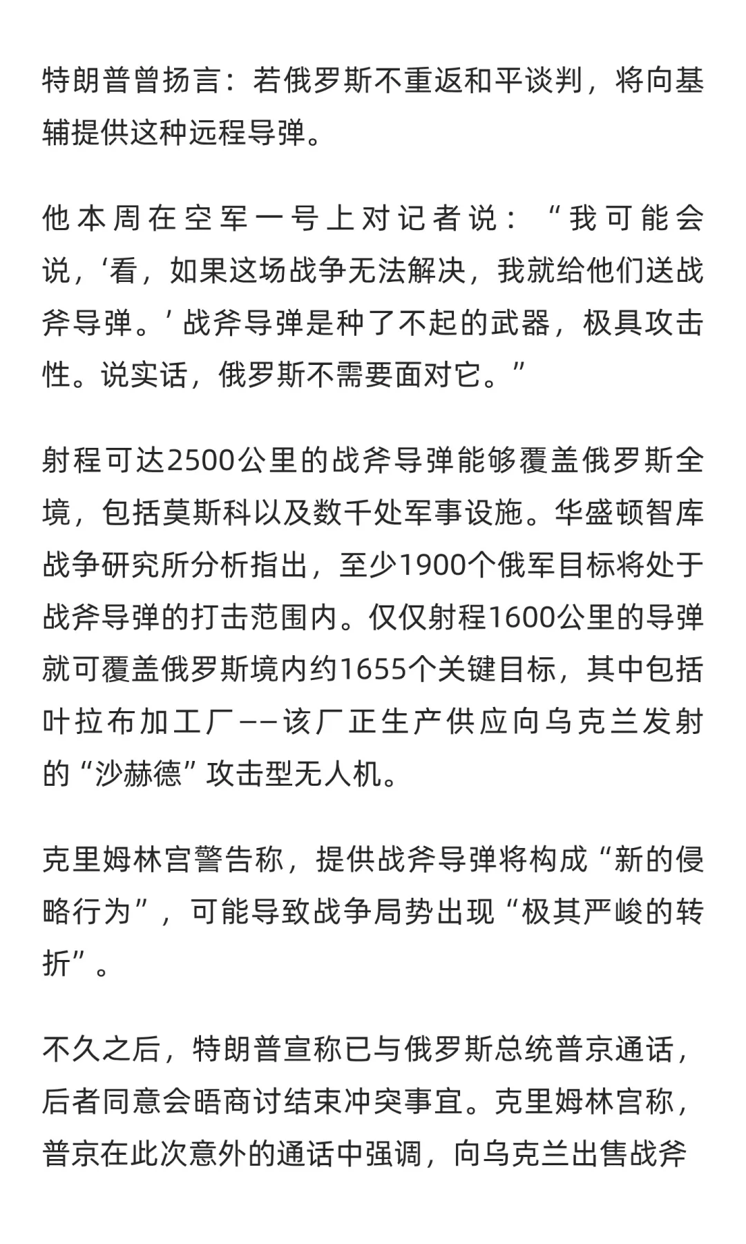 特朗普威胁俄罗斯:要给乌克兰送“战斧”