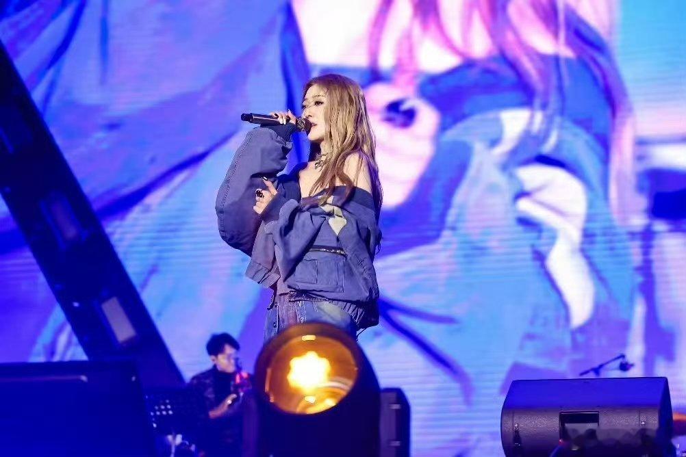 薛凯琪被冻出音效 昨晚的舞台真是美丽又“冻人”,个位数的气温下,薛凯琪依旧坚持穿牛仔抹胸上阵,还在talk环节被冻得发出可爱的“唔”声,让人又心疼又佩服。