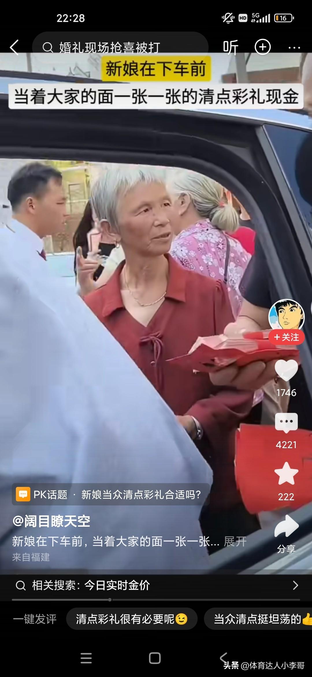新娘在结婚当天即将下车的时候,当着众人的面一张一张的数彩礼钱,唯恐男方这边给的彩礼不够,所有的人都在那里等着她也在那里盯着她,尴尬不已,尤其是新郎,新郎很生气,但是当天所有的亲朋好友都已经到场了,这个时候反悔也没有办法了,新娘就是通过这一点来拿捏了新郎,所以说才会有当时这个比较尴尬的局面,我是觉得这个新娘是真的是没有情商,也丝毫不顾及男方的面子,毕竟她以后要嫁到男方这边的似乎的婚姻在她眼里只有钱,尤其是她低头数钱的那一刻显得多么的丑陋,周围的人都啧啧称叹,都觉得男的是冤大头,如果是她的话,或者如果是我的话,早就分手了!无论她有多么美若天仙,对于这种眼里只有钱的女人,没有必要娶回家之后只会事儿越来越多!