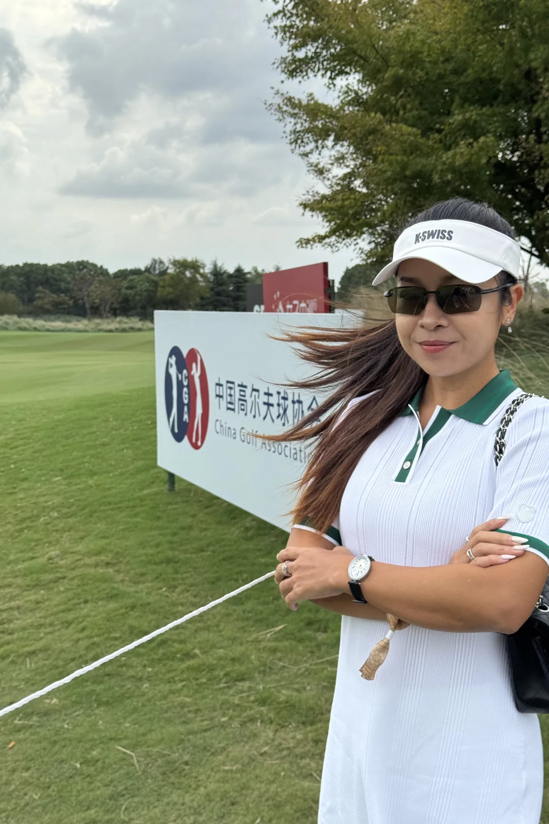 站在果岭边,看球员们从容挥杆,