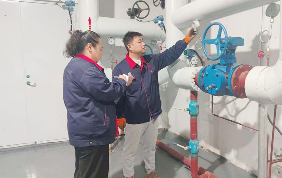 城建怡景换热站站长申嘉俊说道:“通过注水试压,可提前检测供热管网和室内采暖设施是否存在漏水、堵塞等问题,及时排除隐患。目前我们已全面开启注水试压工作,每日查看电控柜上智慧供热系统的运行数据,严防跑冒滴漏。当前,所有管道压力值都处在正常状态,可随时进行供暖作业。”