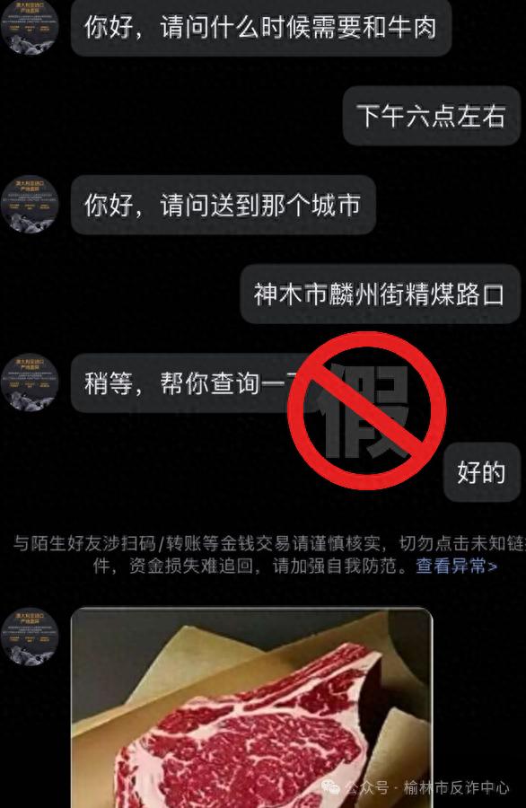 随后,陈主任再次联系小美,称活动还需给老师送牛排礼盒,但他与之前的厂家有矛盾,希望小美帮忙代购,事后会发红包答谢。小美扫描对方发来的二维码添加厂家,将陈主任要的牛排种类告知对方,确认价格后把银行卡号发给了陈主任。