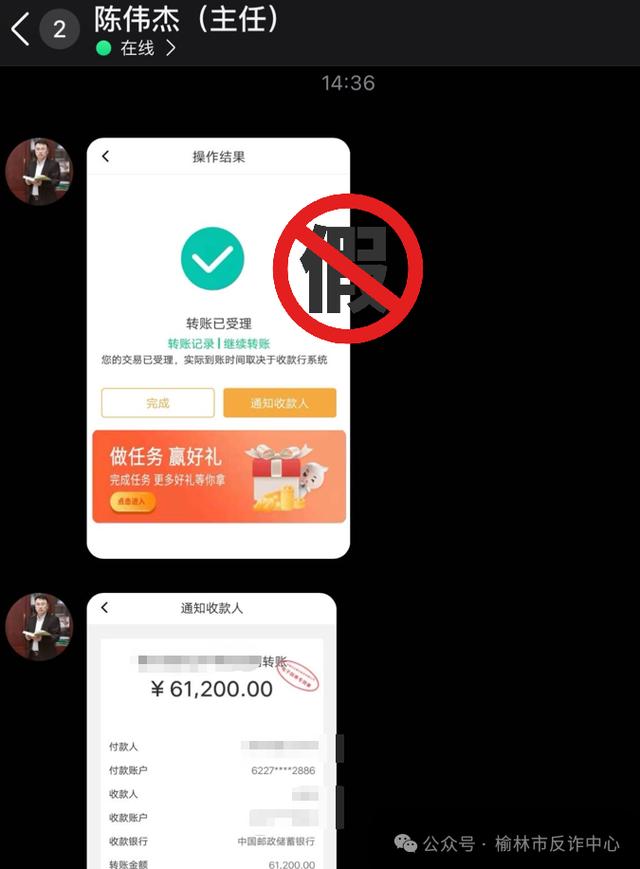 很快,陈主任发来转账成功截图,表示大额转账会延迟到账,让小美先行垫付。小美未曾多想,向厂家转账垫付了9万元。不久后她察觉不对劲,联系银行客服咨询到账情况,才发现自己被骗,随即报警。