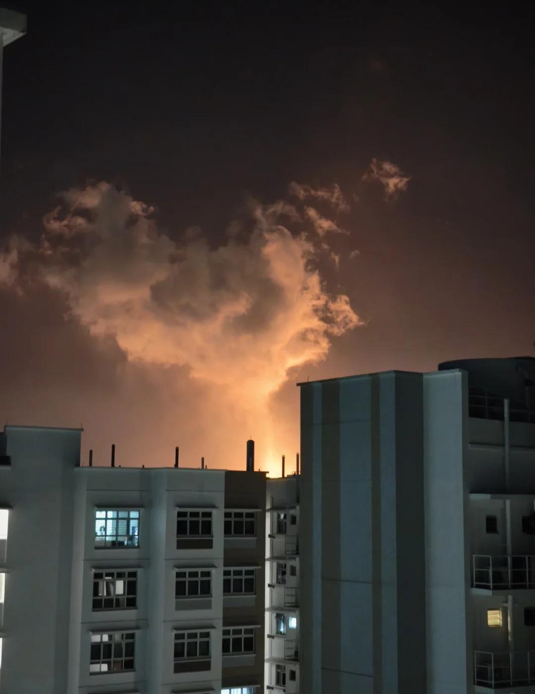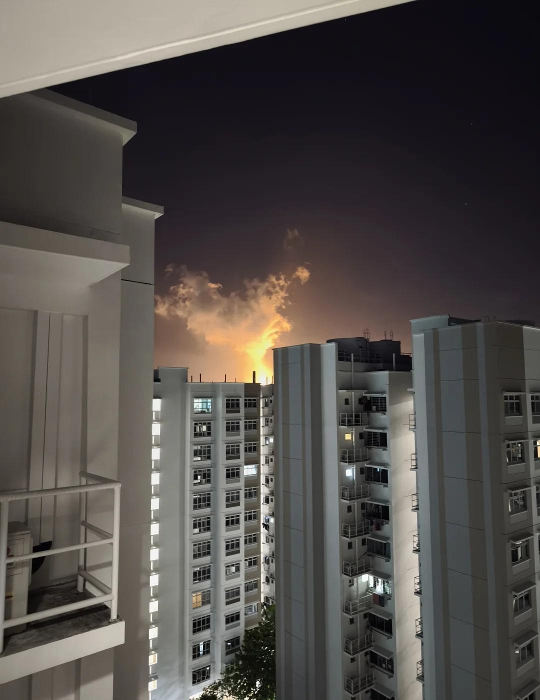 一路看到的火光 今天加班,放功回家一路看到火光呀,感觉火很大。原本以为是附近。但看了几个平台讨论,新加坡多个地方都看得到原来是邻国呀。着火 新加坡🇸🇬