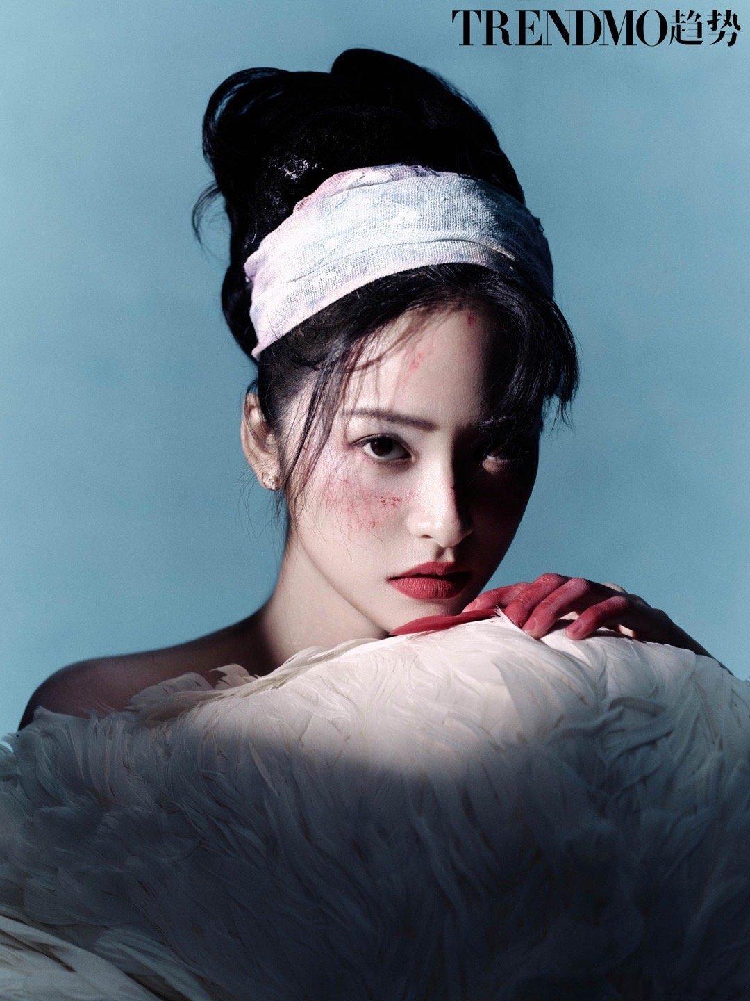 白色羽毛缠绕出云端的轻盈,黑色纱幔勾勒出暗夜的神秘,沈月这次的造型彻底颠覆印象。