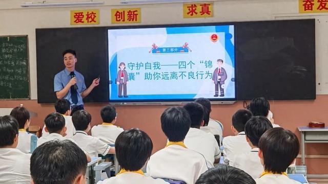 近日,霞山区检察院检察官们走进湛江市滨海学校开展普法宣教活动,为同学们带来了一堂生动而深刻的“法治护航青春,向‘黑恶’说不”的主题法治课。