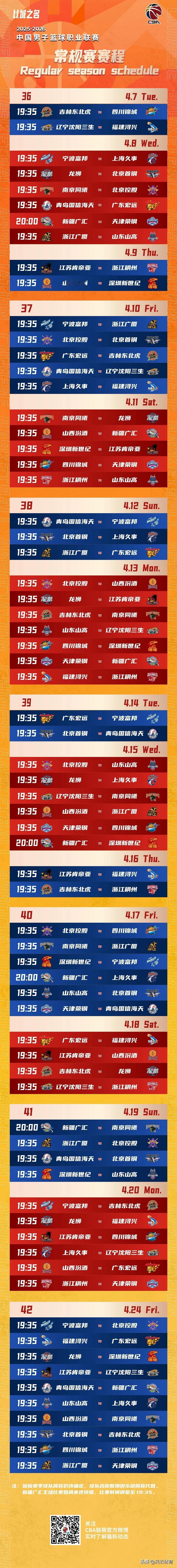 2025-26赛季CBA联赛赛程出炉! 由于今年将举办全运会,因此,新赛季的C