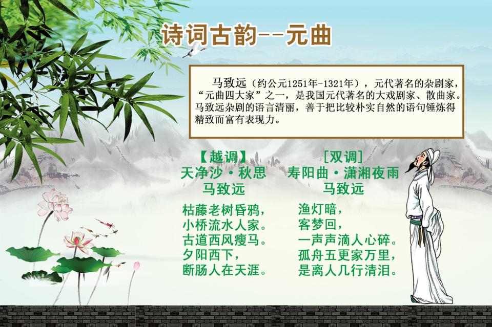 元曲并不完全等同于元杂剧,元曲是散曲和杂剧的合称。 元杂剧又称北杂剧,是元代用北曲演唱的传统戏曲形式,形成于宋,繁盛于元大德年间。它融合多种表演艺术,剧本含唱曲、宾白和表演,体制上一本通常四折,必要时有“楔子”,音乐上一折只用一个宫调。像《窦娥冤》就是元杂剧代表。 而散曲产生于民间俗谣,有小令、套数等体制。如马致远《天净沙·秋思》是小令经典,关汉卿《一枝花·不伏老》则是套数佳作。所以元曲和元杂剧不能简单划等号。