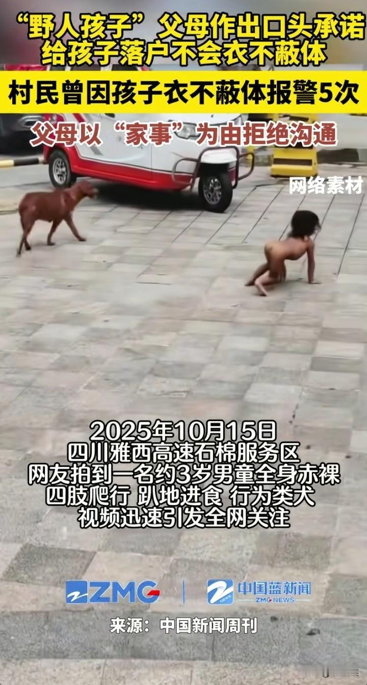 “野人小孩”的父母这下可是出名了 把孩子当狗养,美名其曰“回归自然”,自己的孩子别人管不着。这话术听着熟悉不? 就像那些穿和服逛街的小仙女们说的一样,我自己的衣服想怎么穿就怎么穿,我自己的生活别人干涉不着。 还有评论区某些人说的,哎呀,我们小时候也是这样,几岁了不穿衣服四处跑,不也一样长大了,这只是人家的教育方式不同,我们不用干涉。 像不像,类似的话术,类似的表达意思,同样的逻辑。我们的自由别人无权干涉,这就是认知出了问题,意识形态有毒。 现在咱们也不知道这对父母是不是精神有问题,也没有进一步的确定孩子到底是不是他们亲生的?但他们对待孩子的做法,确实和平常的人不一样,孩子已经脱离了约定俗成的人模样啦。 媒体报道中透露出来,野人小孩的母亲经常穿衣服不完整,受到过村干部的指责。还有这夫妻对孩子的教育方式,和附近村民对他们一家人的态度,可以得出两口子的思想和普通人不一样,简直就是反人格反社会。 一个本科生一个研究生,把孩子养成这样,没有一点道德礼义廉耻,这书读到哪里去了? 当个人生活方式对他人造成不良影响时,干涉是必要的。每个人都有自由,但自由是不违法,不违背公序良俗,不违反社会公德! 希望有关部门能继续跟进,让孩子回归到正常人的生活。